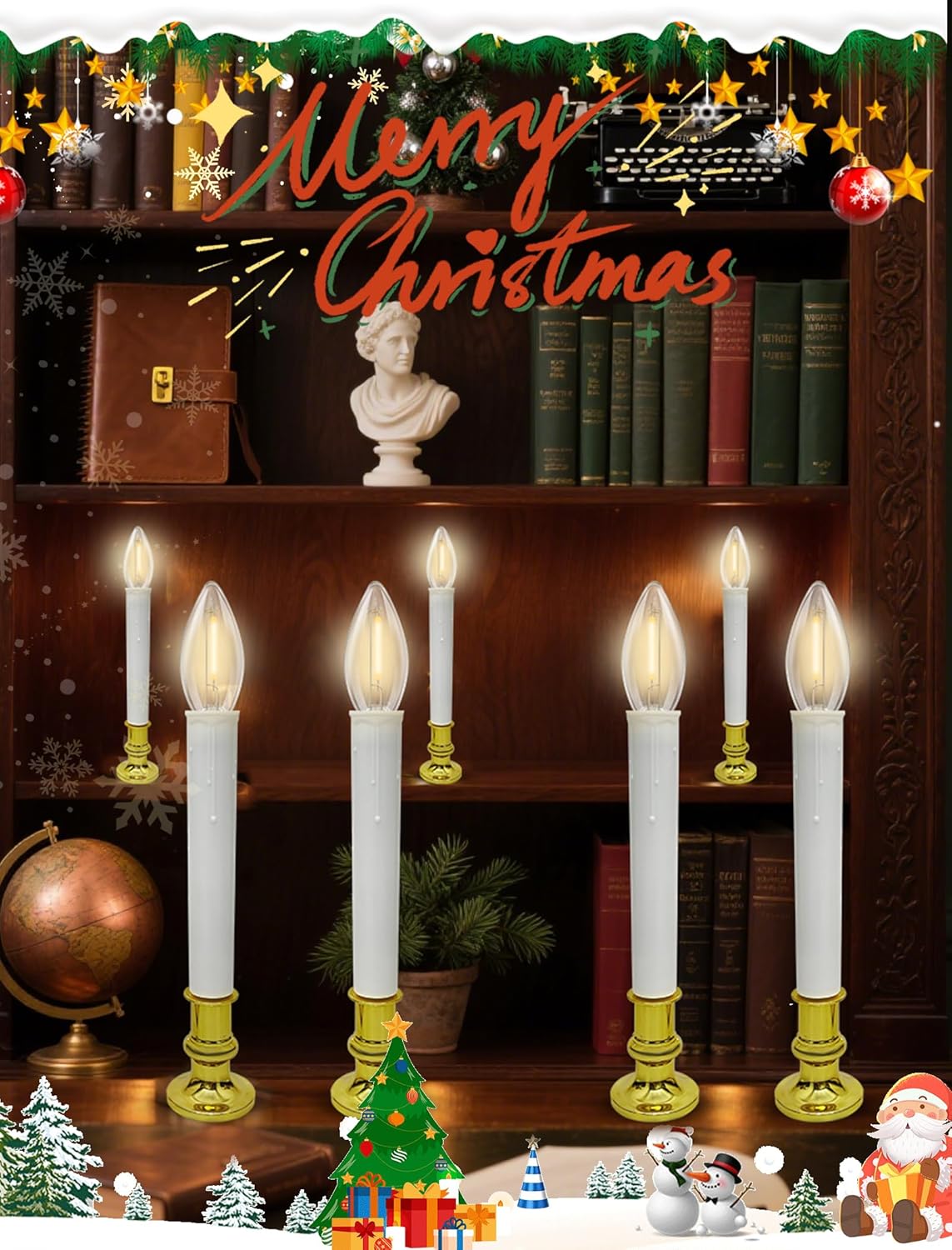 SpecificationPower Source: Battery PoweredNumber of Light Sources: 10Mounting Type: TabletopVoltage: 3 VoltsLamp Type: CandleNumber of Items: 10Indoor Outdoor Usage: IndoorRoom Type: Bedroom, Living Room, Dining Room, Kitchen, Bathroom, Home OfficeAdditional Features: Flameless, Cordless, Energy Efficient, Flexible, Portable, Shatter ResistantApplicationBattery operated window candles feature a 6 hour automatic shut off timer. Once turned on, they automatically turn off after 6 hours and turn on at the same time each day.Christmas candle lights are perfect for Christmas decorations and can be used in homes, bedrooms, living rooms, windowsills, bookshelves, dining tables and more.