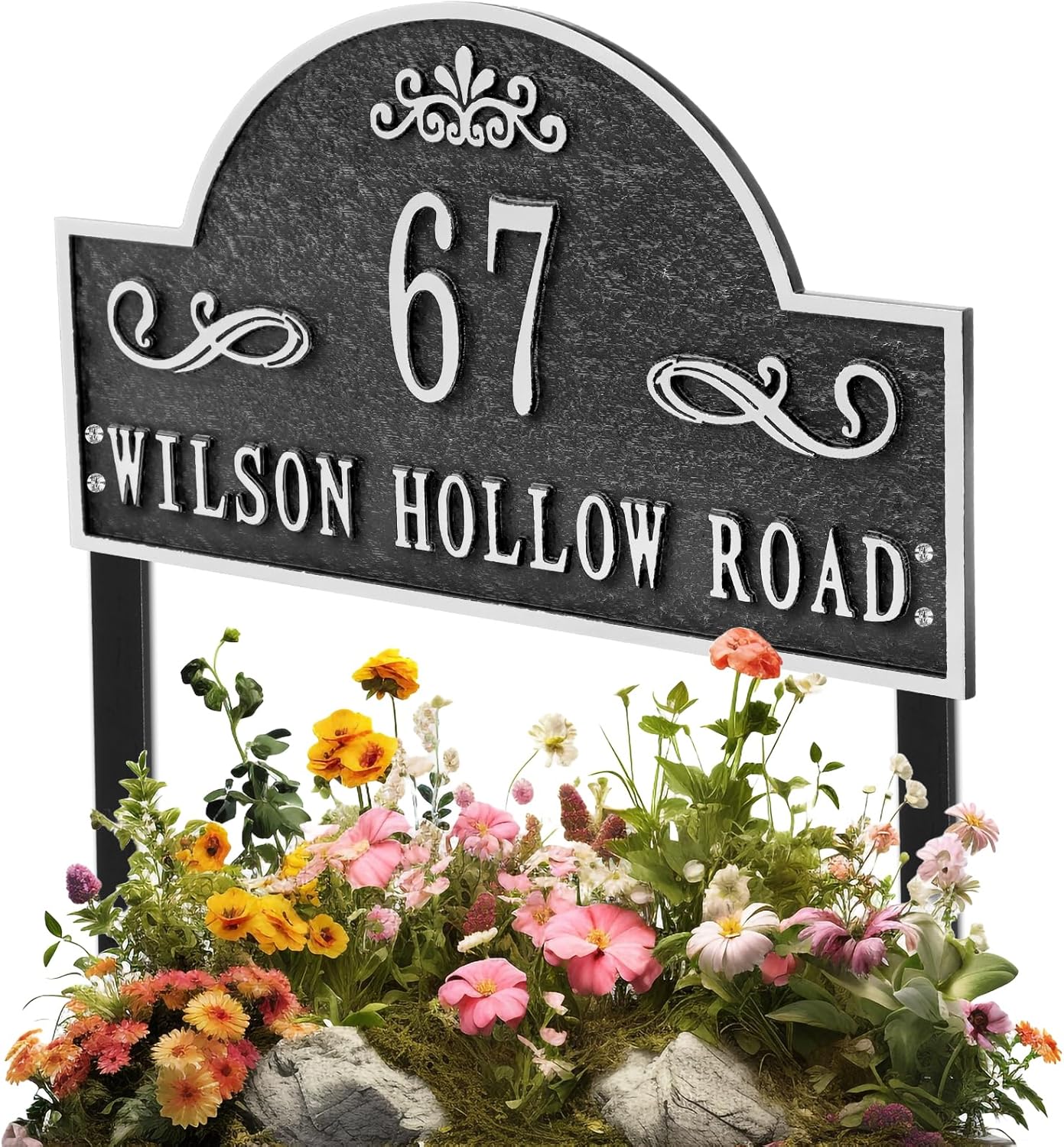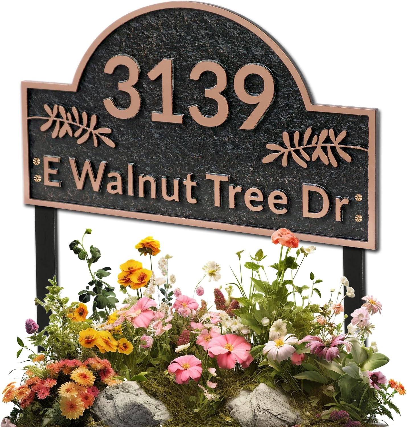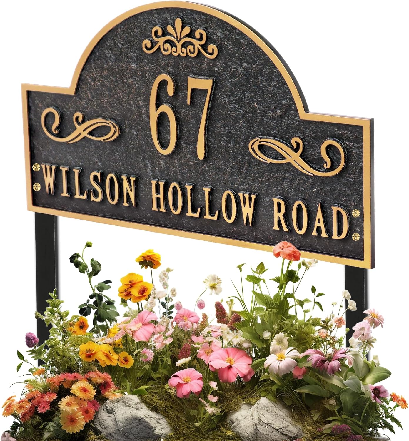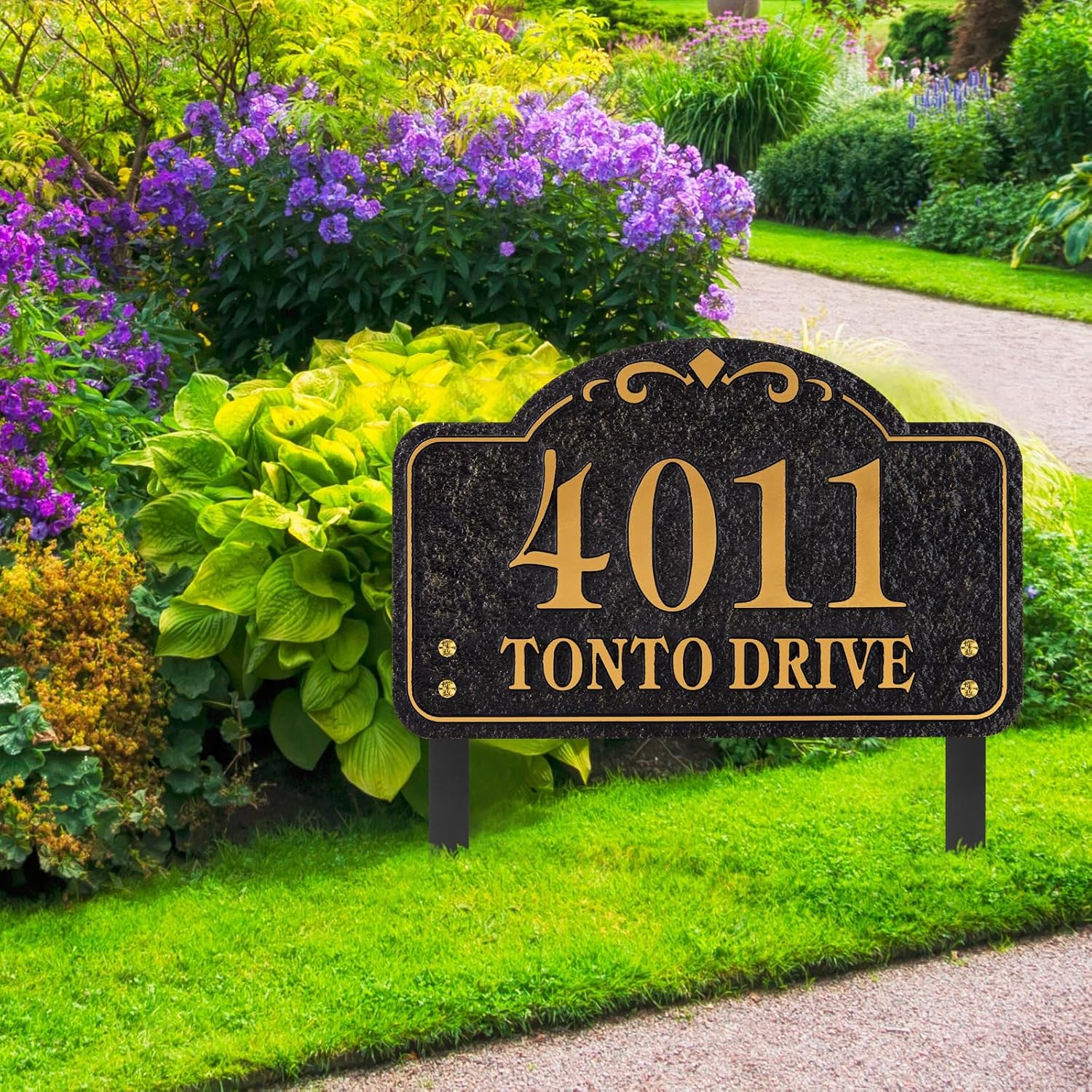 Address Plaques for House- LAWN MOUNTED,Engraved Metal with 2 Stakes Customized House Numbers Sign for Outside Store,Yard,Garage,Apartment By My Sign World