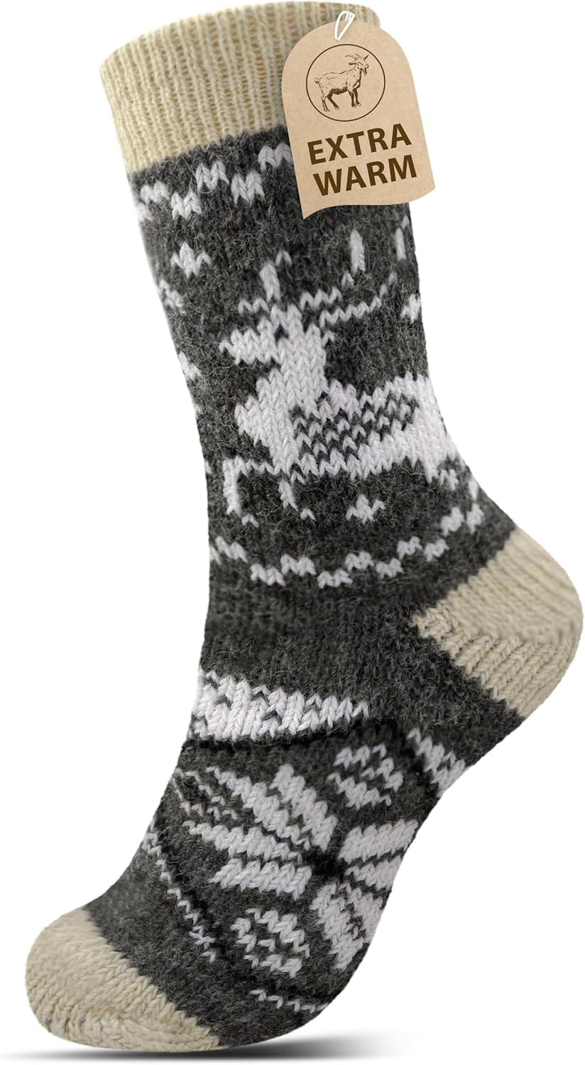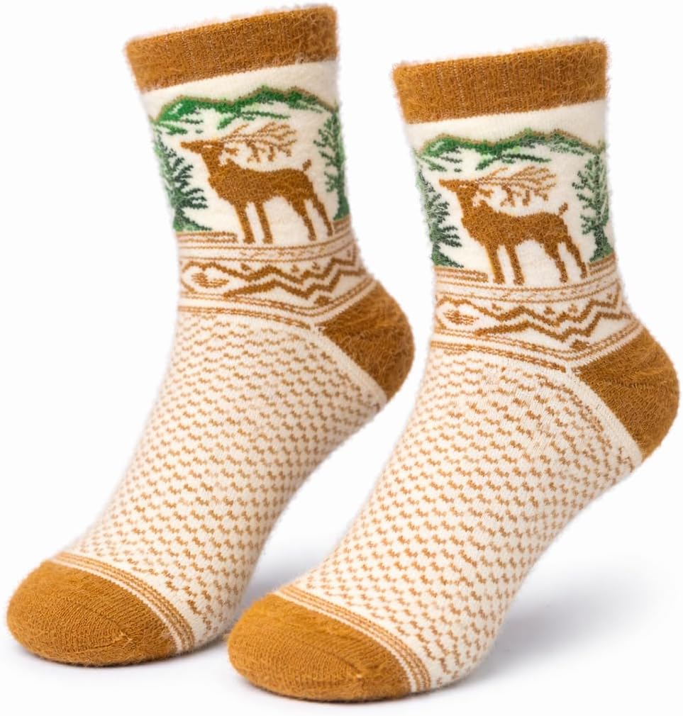 Crafted from pure, natural boiled Angora goat wool, these socks ensure your feet stay warm and dry in any weather. They're durable, dense, breathable, comfortable, and soft, with a unique pattern available in various colors and stylish designs.