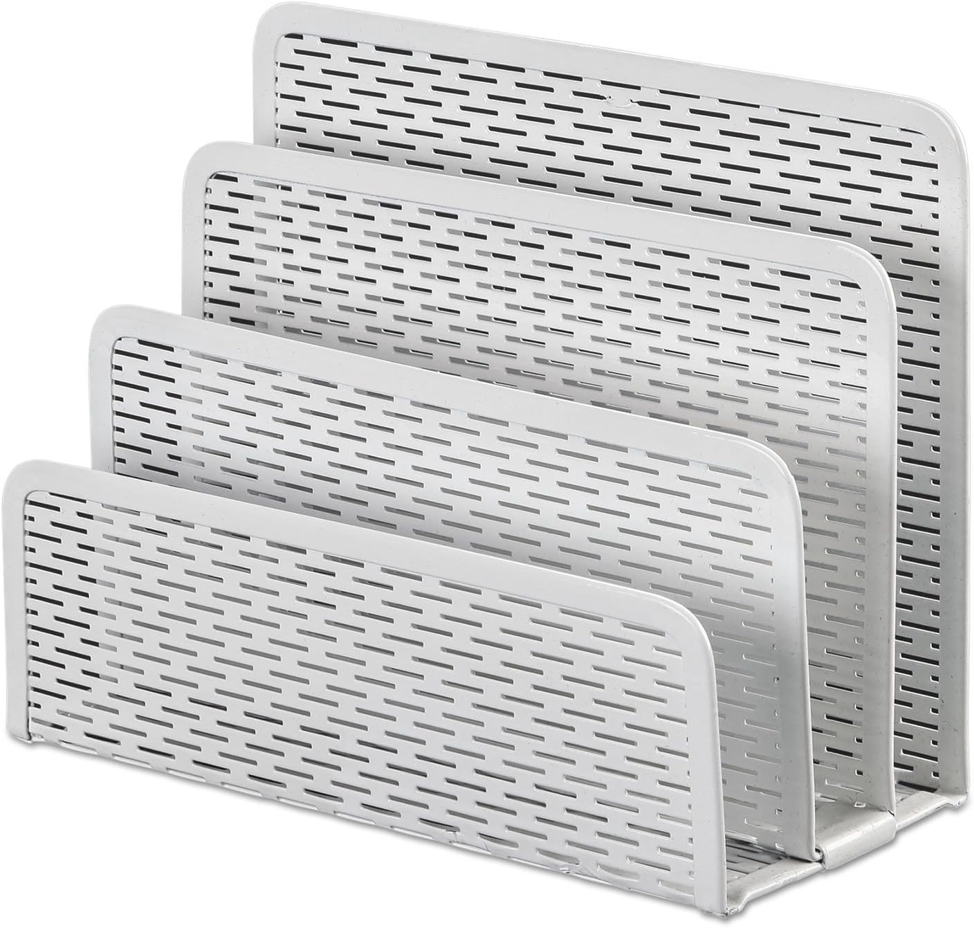 The Urban collection punched metal desktop file sorter can hold and organize Large catalogs, expanding files, file folders, writing pads, and even binders up to 3" wide. Three wide compartments will keep frequently used information in a more compact space on your desktop. The protective feet will prevent surface wear and scratches.