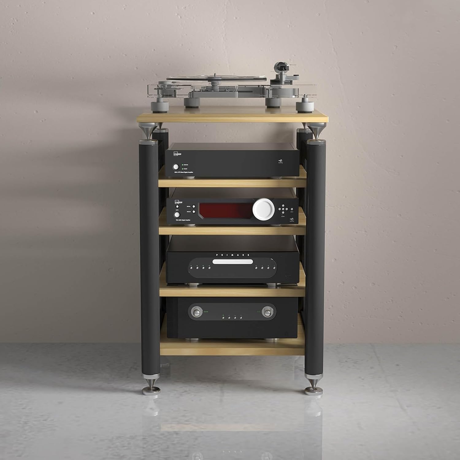 AV Media Stand,Audio Rack Stereo Cabinet,Stereo Stand with Shock-Absorbing Feet,Dvd Stand Storage Tower,record player console cabinet,Audio-video Shelving,Entertainment Stand(White+black,4floor)