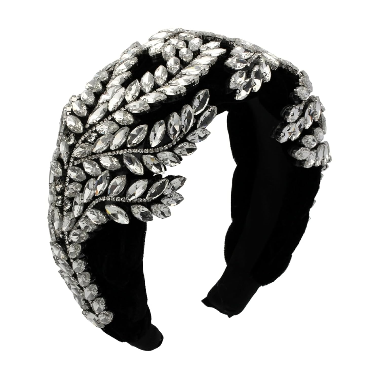 Big Wide Crystal Rhinestone Headband for Women Baroque Decorative Hairband Elegant Leaf Flower Hair Accessories
