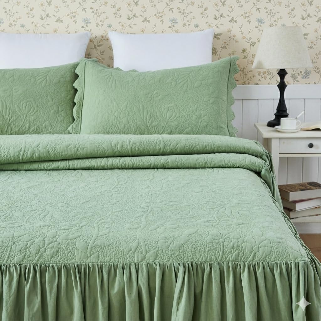 | Product Care Instructions | Machine Washable in Cold Gentle Cycle., The quilt set comes vacuum-packed; it would puff up when washed and dried, and take on a more textured appearance., Tumble Dry Low Heat. |