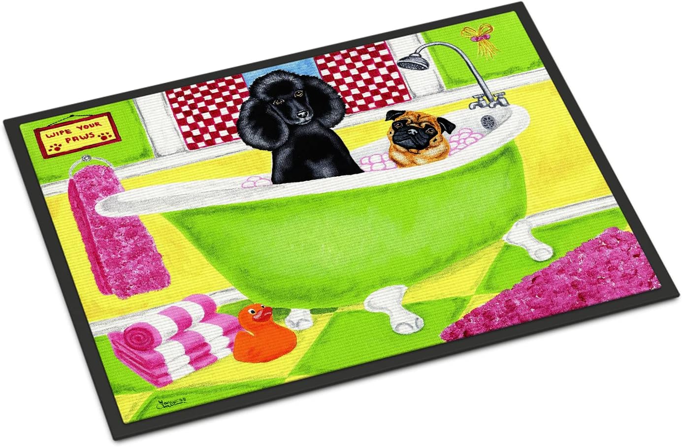 Indoor/outdoor floor mat 24 inch by 36 inch action back felt floor mat/carpet/rug that is made and printed in the USA. A black binding tape is Sewn around the mat for durability and to nicely frame the artwork. The mat has been permanently dyed for moderate traffic and can be placed inside or out (only under a covered space). durable and fade resistant. The back of the mat is rubber backed to keep the mat from slipping on a smooth floor. Wash with high pressure from your Garden hose or with a power washer. Use cleaner that does not produce suds.