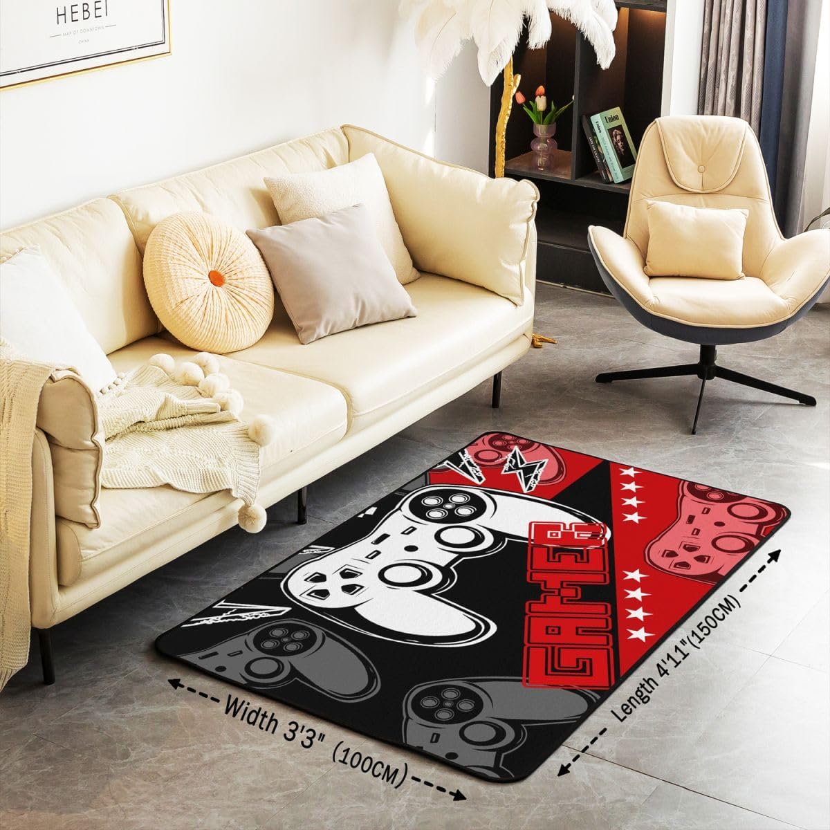 Tips: The carpet will arrive with temporary creases, you can repeat the process several times by rolling the carpet in the opposite direction of the creases and then spreading the carpet flat and pressing the edges of the roll with a heavy object to restore the carpet to its original state. We recommend using an iron to iron carpets at low temperatures more quickly Size: 2 sizes can be chosen of our rugs dimension: 3' x 5' x 0.39'' 100cm x 150cm x 1cm. 5' x 6'6'' x 0.39'' 150cm x 200cm x 1cm. Material: Made with 100% polypropylene. No chemicals used, No dye substance harming the health of you or your family. The rubber non slip design on the bottom of the area rug for bedroom is the safest protection. One piece is enough,you don't need to buy additional non slip carpet pads Machine washable: Soak in cold water for 10 minutes,then folded twice and put into the washing machine on gentle cycle, and then dry in the air.Do not use chlorine or bleach Features: With many different patterns to choose from, you will easily find rugs to coordinate with your decor. Our rug is widely used as the floor rug as well as a play mat, kitchen rug, bedroom rug, laundry mat, living room mat, office rug etc. Notes: Due to the light and screen setting difference, the item's color may be slightly different from the pictures Please allow slight dimension difference due to different manual measurement