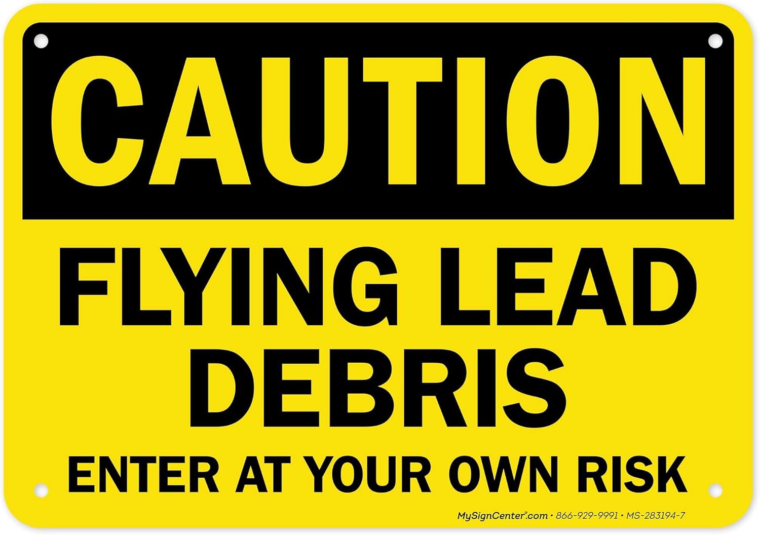 Caution Flying Lead Debris Enter At Your Own Risk Sign, 12x18 Inches, 55 mil thick HDPS (high density polystyrene), Made in USA by My Sign Center