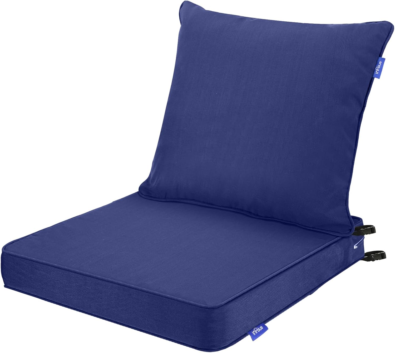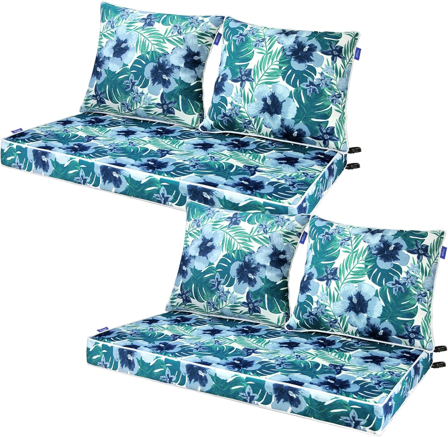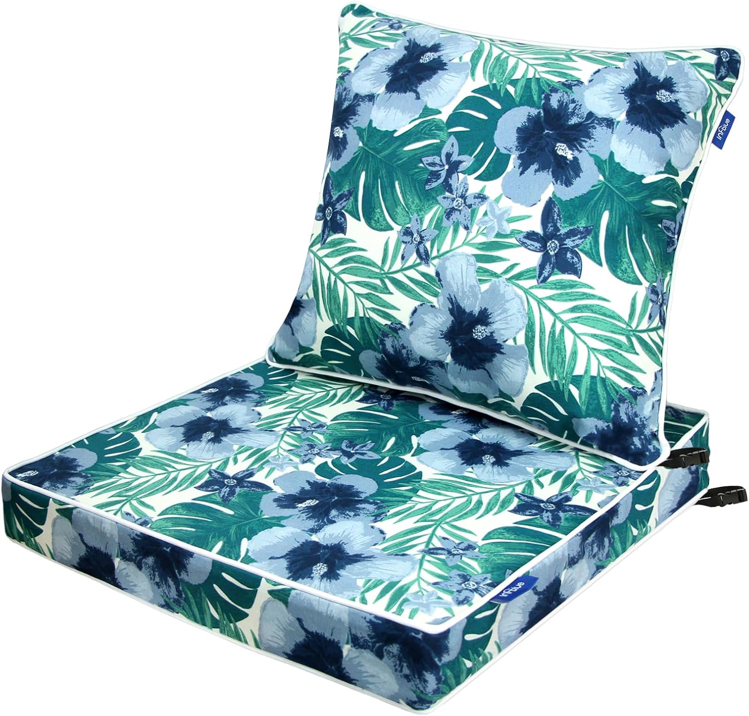 • Deep Seat Cushions: Comes in 2 pieces. Seat cushion measures 22'' L by 24'' W by 4'' H, back cushion measures 23‘’ L by 19‘’ W. Please measure the dimensions of your furniture before place the order.