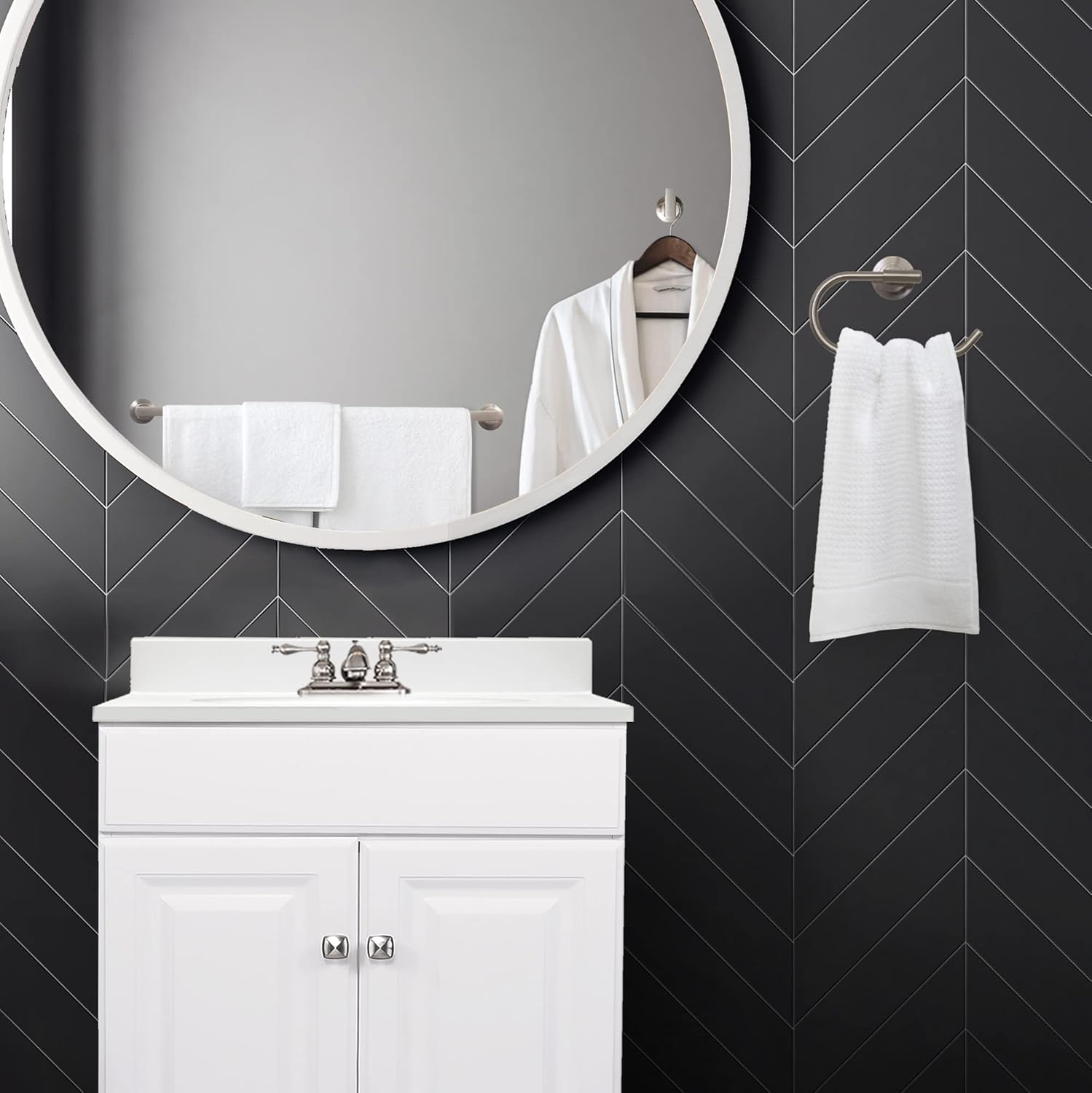 | Included Components | 24" towel bar, towel ring, toliet paper holder, robe hook |