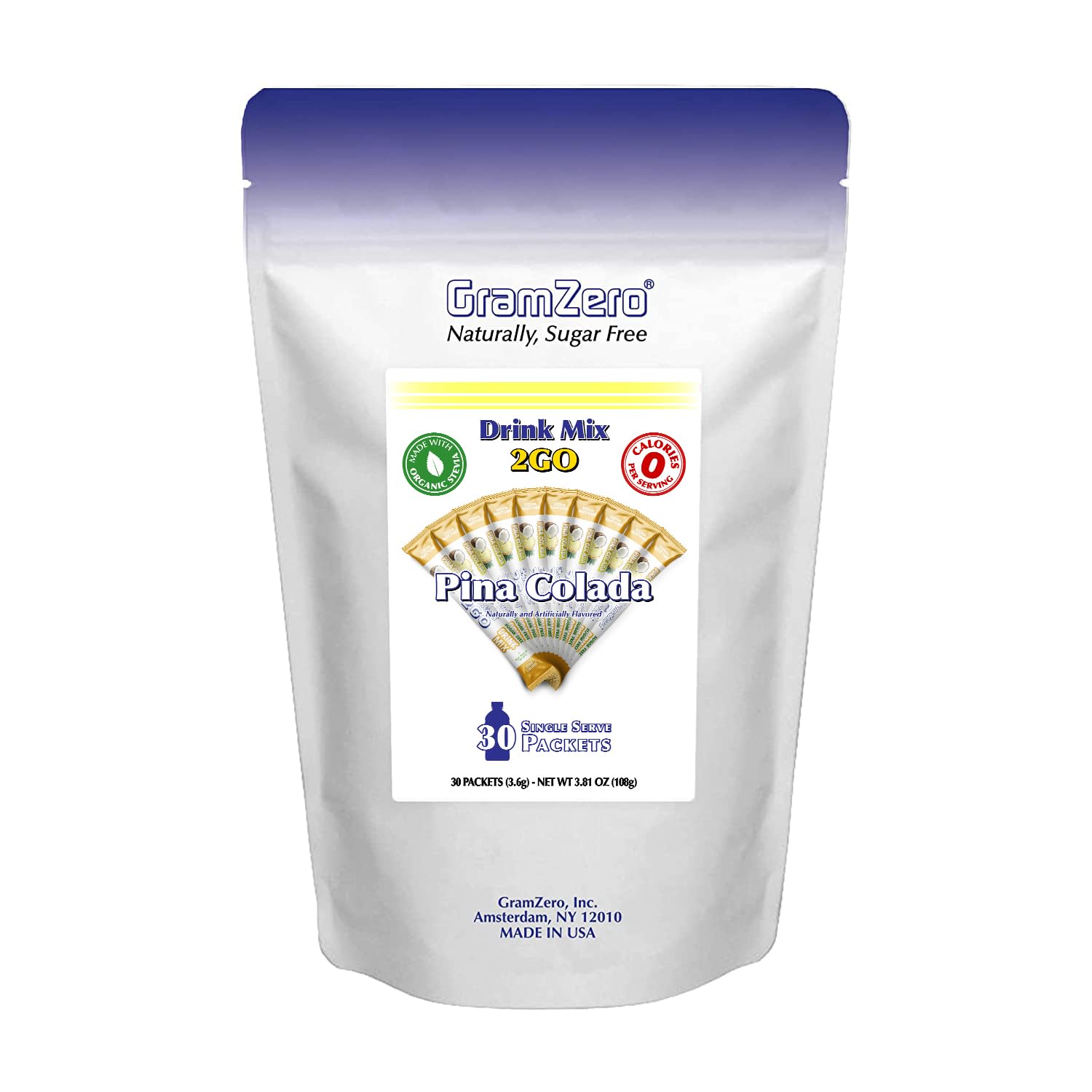 GramZero Sugar Free Drink Mixes are NOW available in convenient 2GO Stick Packs!GramZero Naturally, Sugar Free drink mixes are sweetened with Organic Stevia for the best zero and/or low carb drinks! Each sugar free powdered drink mix tastes just like the sugar sweetened drinks, however with no unwanted aftertaste, no sugar alcohols, no artificial sweeteners, and has zero calories!Looking for Keto drinks besides water? You’ve found the best organic stevia sweetened drink mix that is Keto Friendly and makes a 0 calorie drink! Add our powdered drink mix as a water flavor enhancer or to make one of the best keto diet drinks! GramZero products support a Ketogenic diet and this keto powder drink mix makes some of the best keto beverages around!These 2GO Sugar Free Drink Mix Sticks are perfect for Nutrition Clubs use as a 0 Calorie Energy Tea flavoring part of a loaded tea kit to-go, for anyone as a Low Carb Drink Alternative and Keto Friendly Drink Mix, or to simply enjoy as a refreshing and hydrating Sugar Free Drink at home or on the go!At GramZero, we are a family owned and operated company. Our mission is to provide easy to use, great tasting and Naturally, Sugar Free products that help encourage healthy living! All GramZero products are sugar free and low or zero calorie, sweetened naturally only with Organic Stevia!Thank you so much for supporting our business! The GramZero FamilyInstructions - Drink Mix: Each stick mixes with a 16.9oz water bottle as a flavored water. Instructions - Nutrition Clubs: One Stick is used as 1/2 tsp in Loaded Tea Recipes.