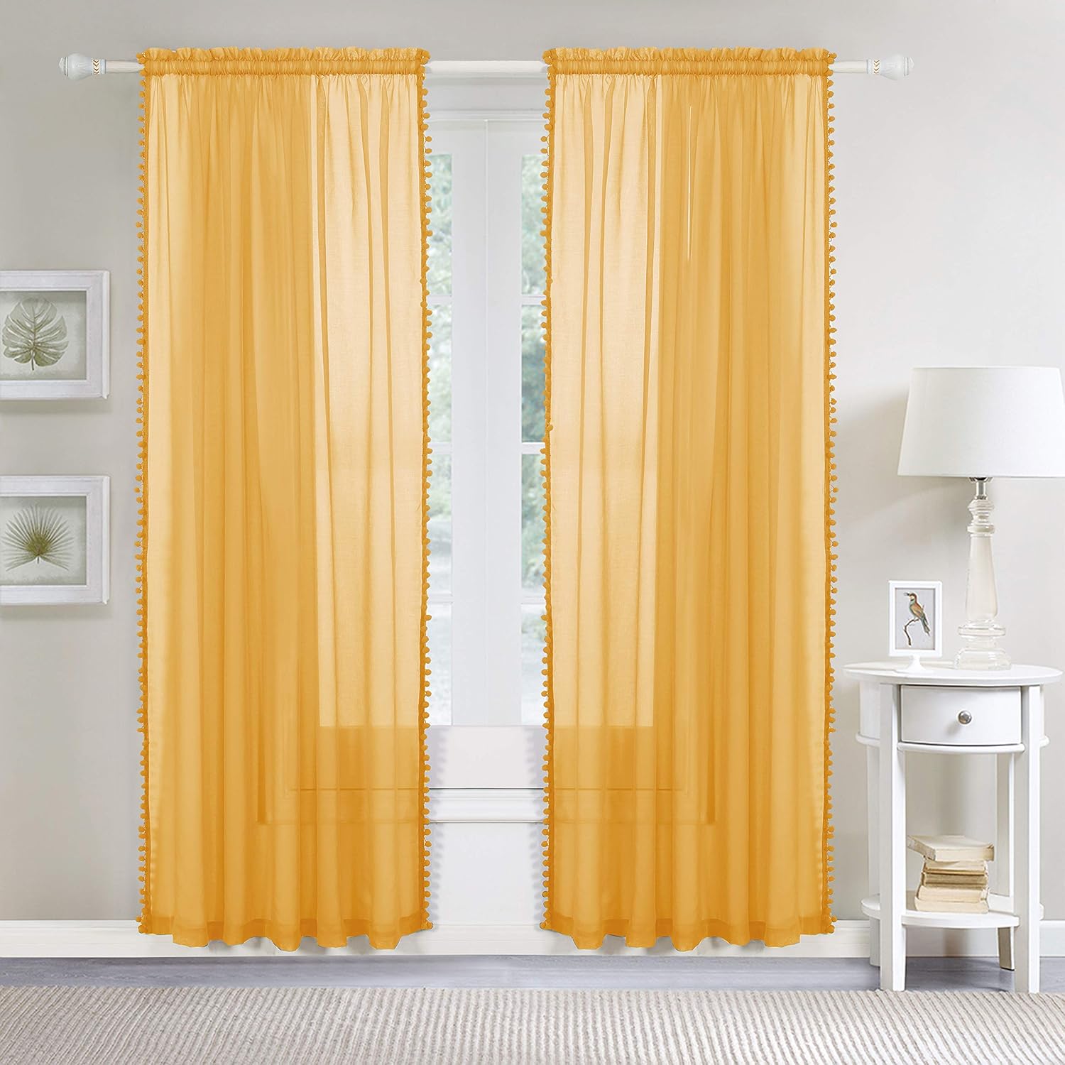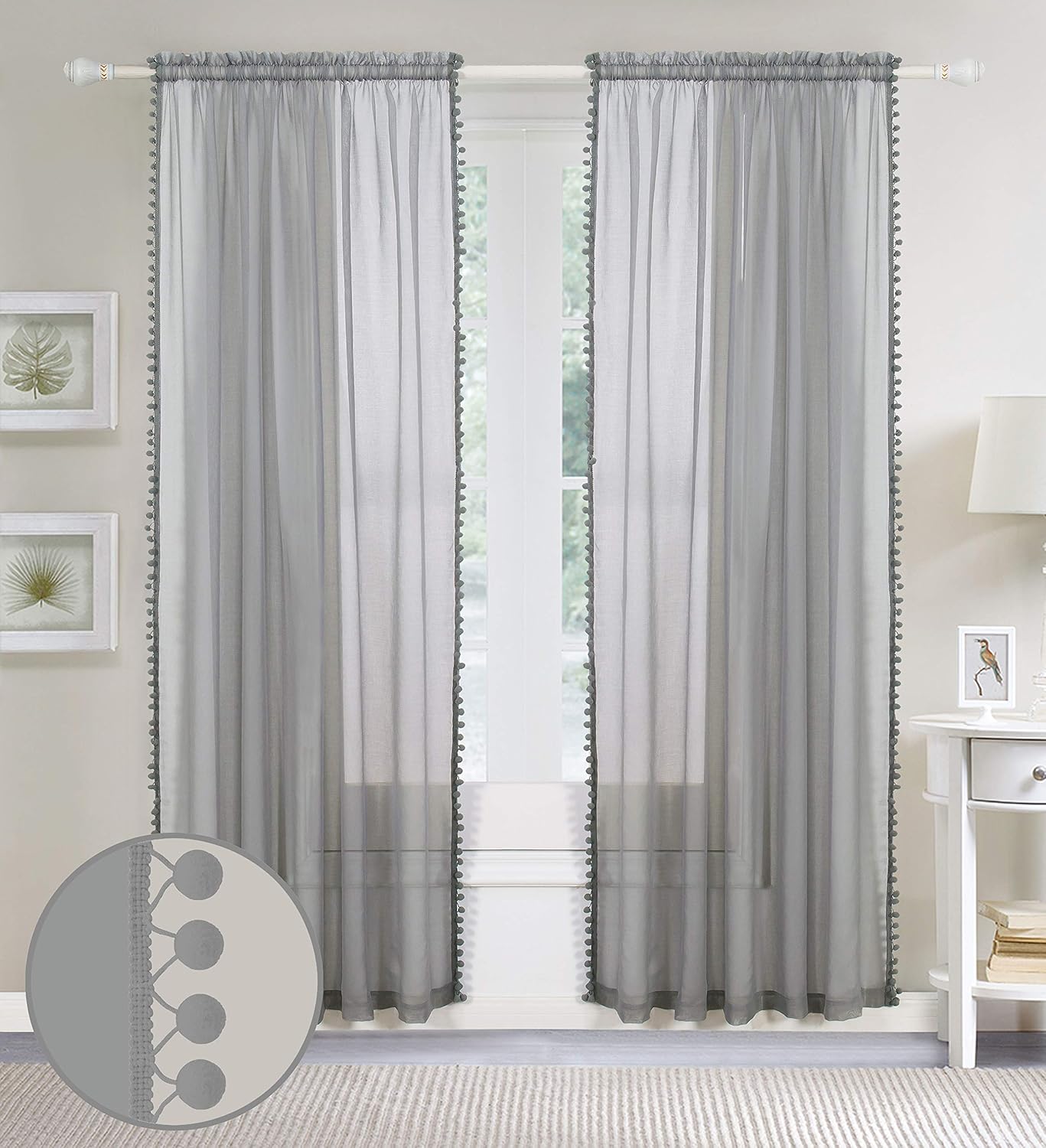 | Model Name | Luxurious Pom Pom Tassled Sheer Curtain/Panel with 2" Rod Pocket - |