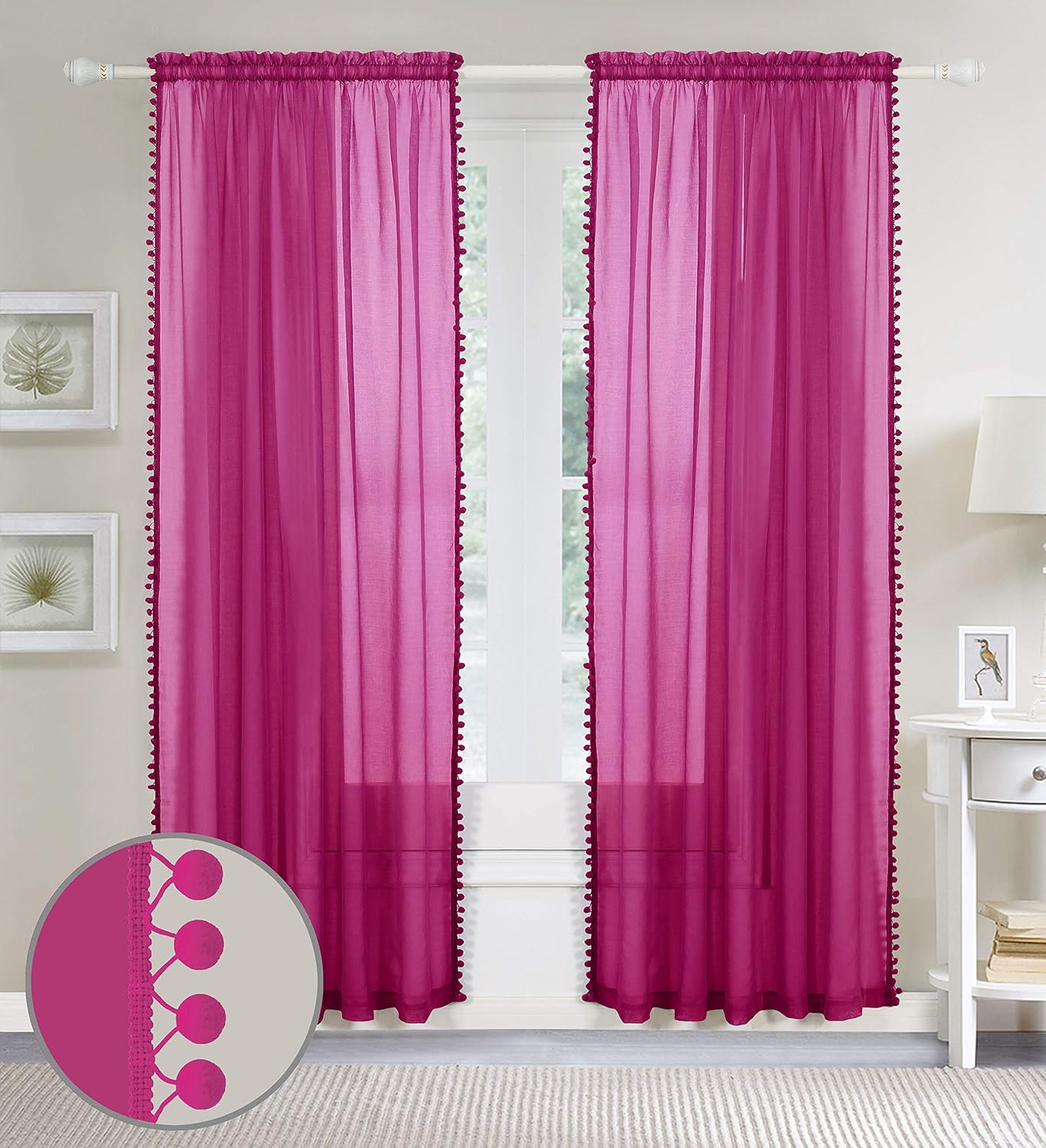 These versatile Tassleed Sheer Curtains can be used for any room and will compliment any decor or can be used as a Curtain Backing.This beautiful voile panels will give a perfect look in your living room, Office or anywhere else. Our Pom Pom Sheer Curtains are made of High Thread 100% polyester. Machine washable. Imported. Care Instruction : Machine wash with mild soap and warm water. Delicate cycle. Cool touch up iron if desired. Elegant Comfort