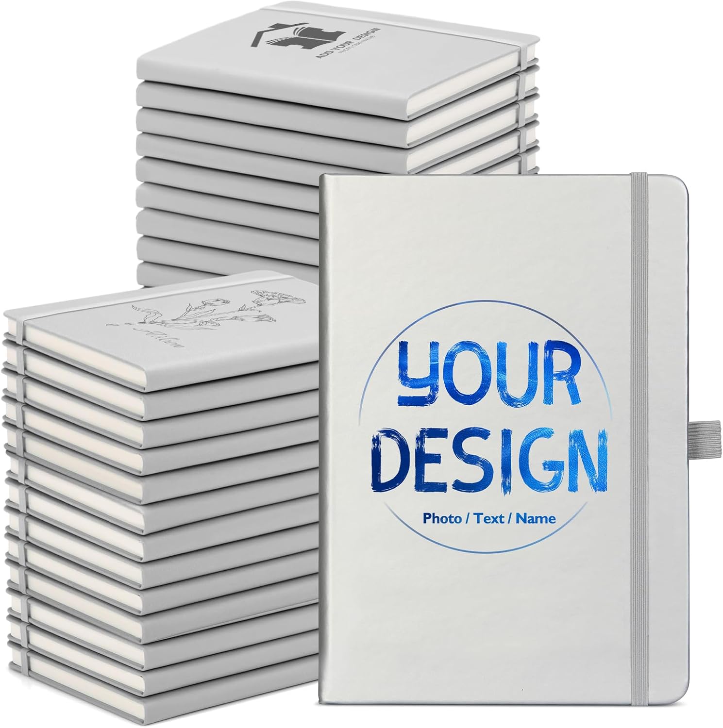 ENOMY 50 Pcs A5 Personalized Custom Notebook Bulk Notebook with Logo Image Text Leather Journal Personalized Gifts for Office, College, Business, Christmas, Birthday (deep Blue)