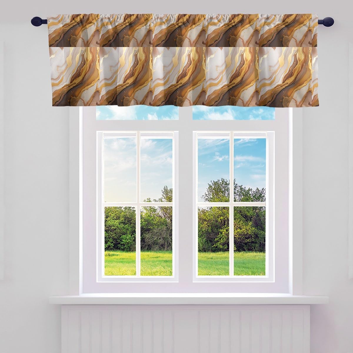 Colorful Makeover to Your Life Size Information 1 Panel 52 Wx12 L inch 1 Panel 52 Wx18 L inch This item is ready to hang easy set up ,this panel has Standard Rod Pocket on the top for easy hanging, rods Not included. Crafted from polyester fabric,soft and natural effect make the panels more draped and aesthetic Enhancing Privacy Valance Curtains are light and airy, giving just the right balance of privacy and light, Room darkening technology blocks out some unwanted light while enhancing privacy for washroom and bedroom.It helps you get a sounder and more uninterrupted sleep use in Different Places Made a Suitable kitchen valance, short curtains for living room, window valance for bathroom, valances curtain for bedroom, sliding glass door valances