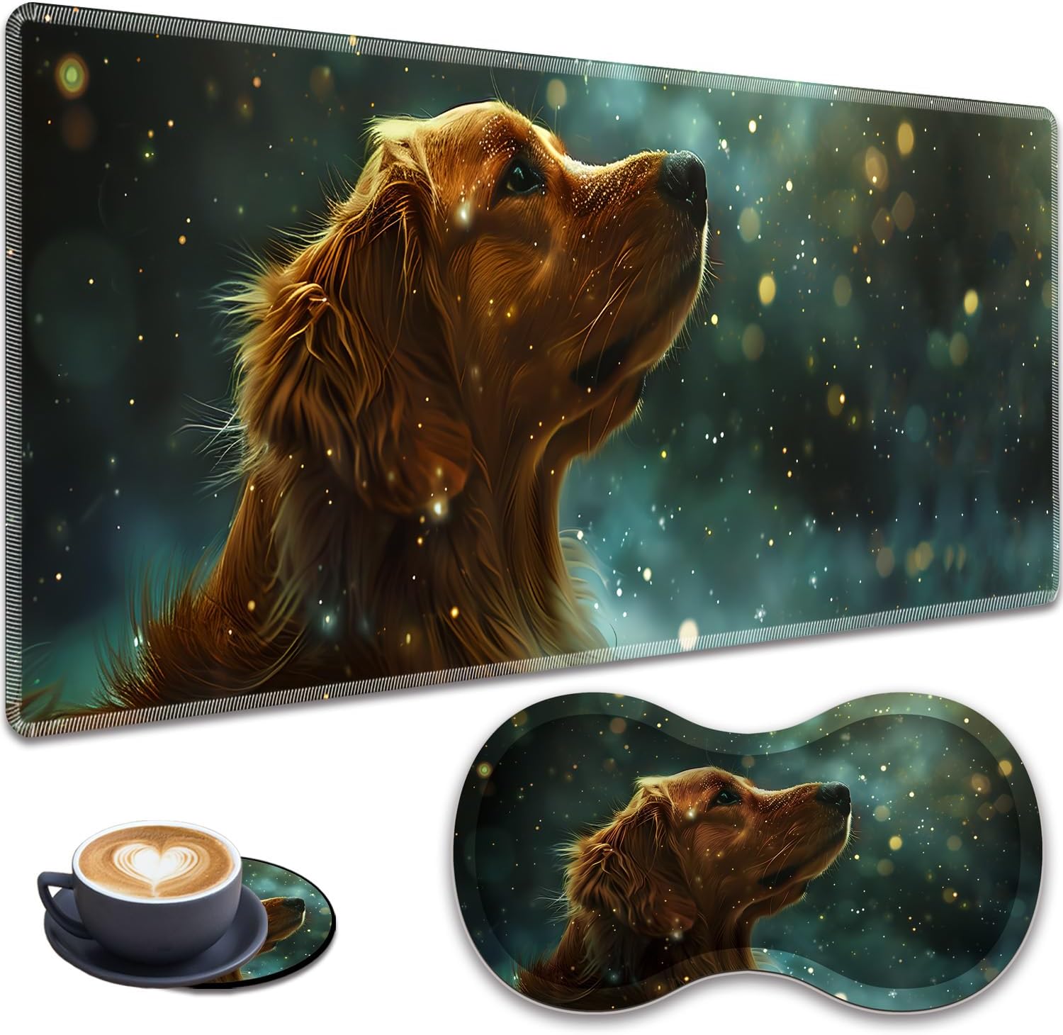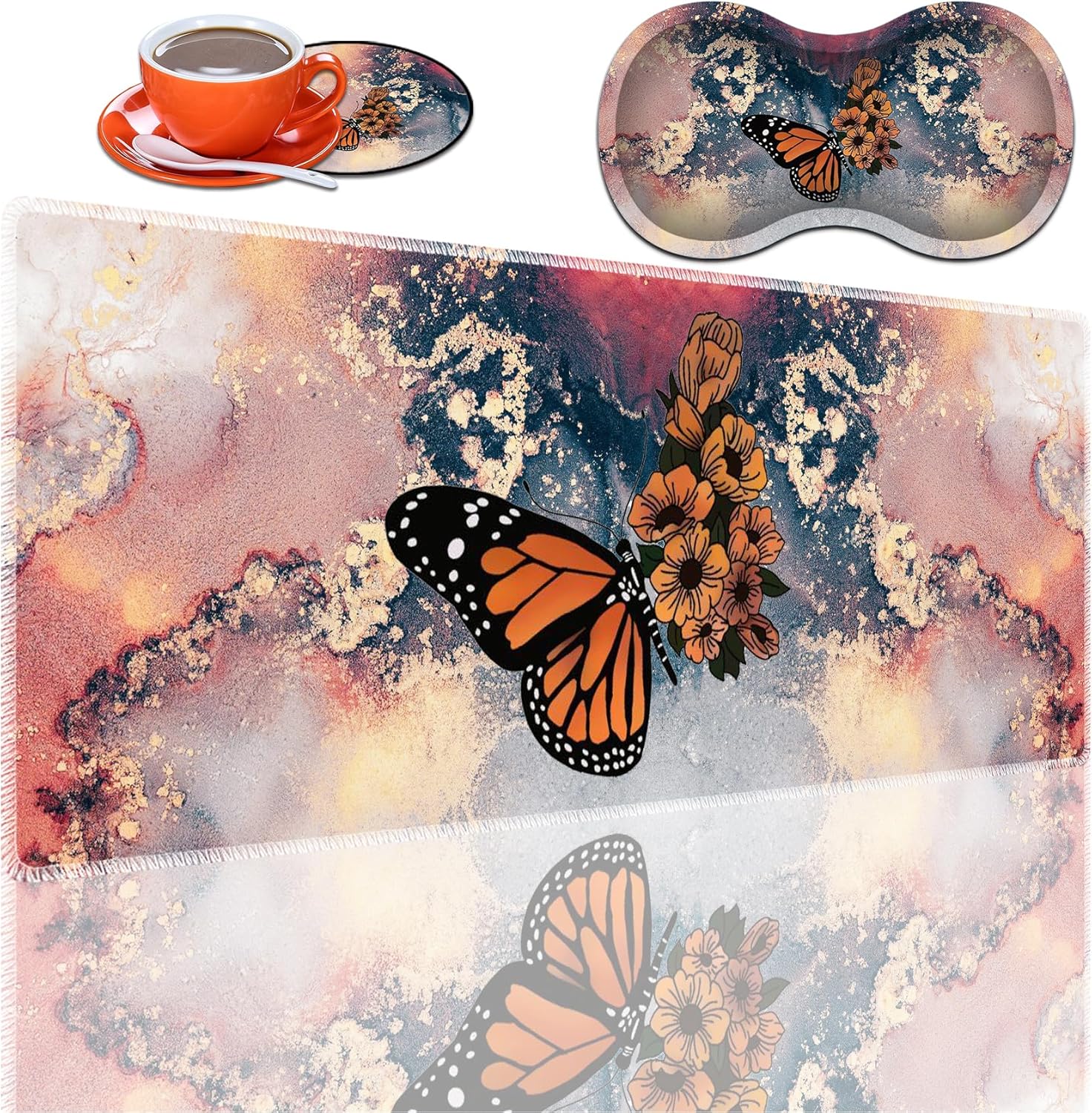 Welcome to "Our Store" to order mouse pads. With a variety of excellent patterns to choose from, the uniquely shaped and beautifully patterned mouse pad becomes an elegant addition to your desk, bringing a different feel to your desk.Material:Set mouse pad: breathable fabric, comfortable Lycra surface and non-slip rubber soleFeatures:1 Natural rubber, non-toxic, no peculiar smell, harmless to health.2 The surface will never wear, never twist and easy to clean.3 The smooth and delicate surface improves the mouse's movement trajectory, and the non-slip rubber lower surface firmly grasps the desktop.4 Offers a variety of different cute patterns to choose from, a perfect match for both men and women. Also the best gift choice.Package Included:1 Desk pad mouse pad, 1 Mouse wrist rest, 1 Coaster Product quality assurance:If you are not satisfied with our products or have any questions, please feel free to contact us. A pleasant shopping experience is our top priority.Due to the difference of each person's computer screen, the color of the product may be slightly different from the picture.