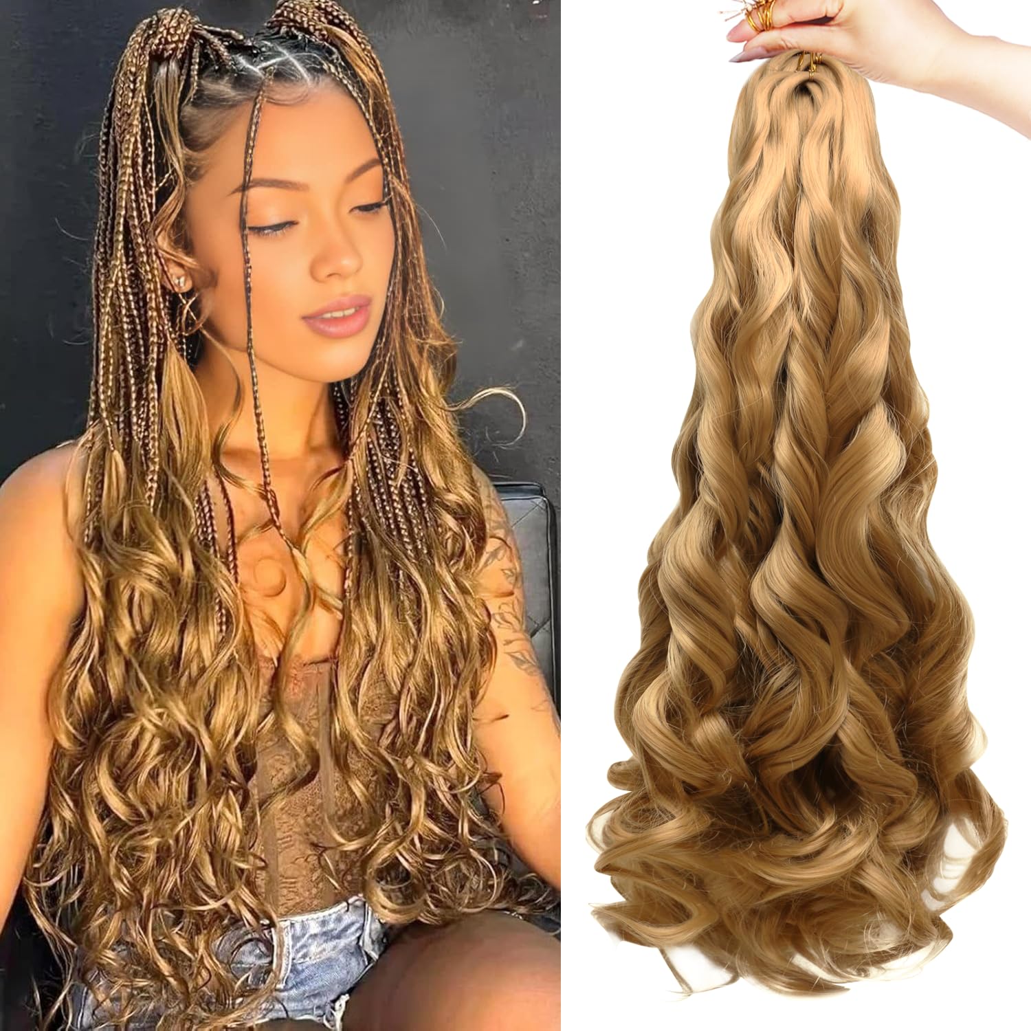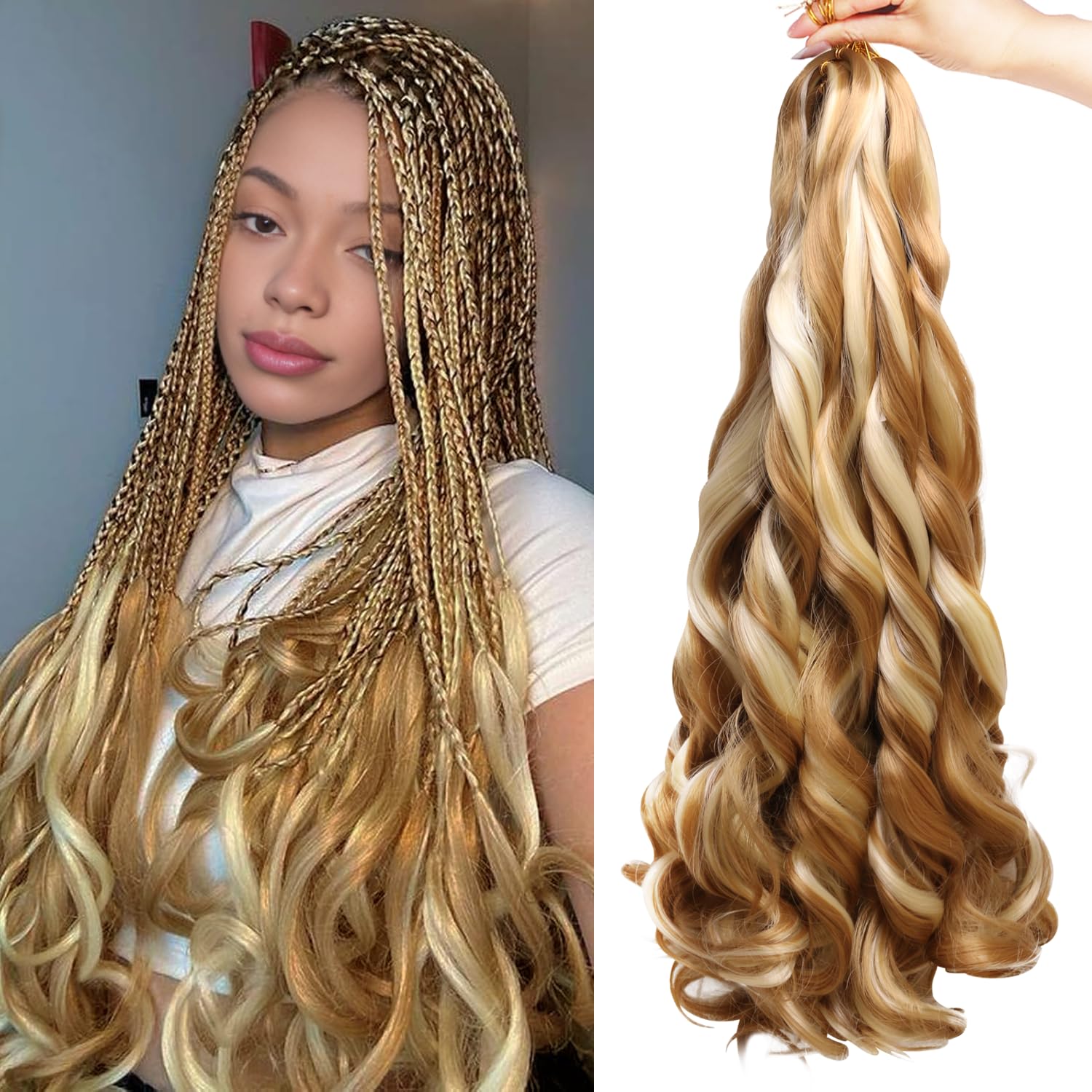 • French Curl Braids Specification - Each package includes 8 packs of 24-inch curly braiding hair (75±5g/pack), plus 1 crochet needle. Usually 8-10 packs can make a full head