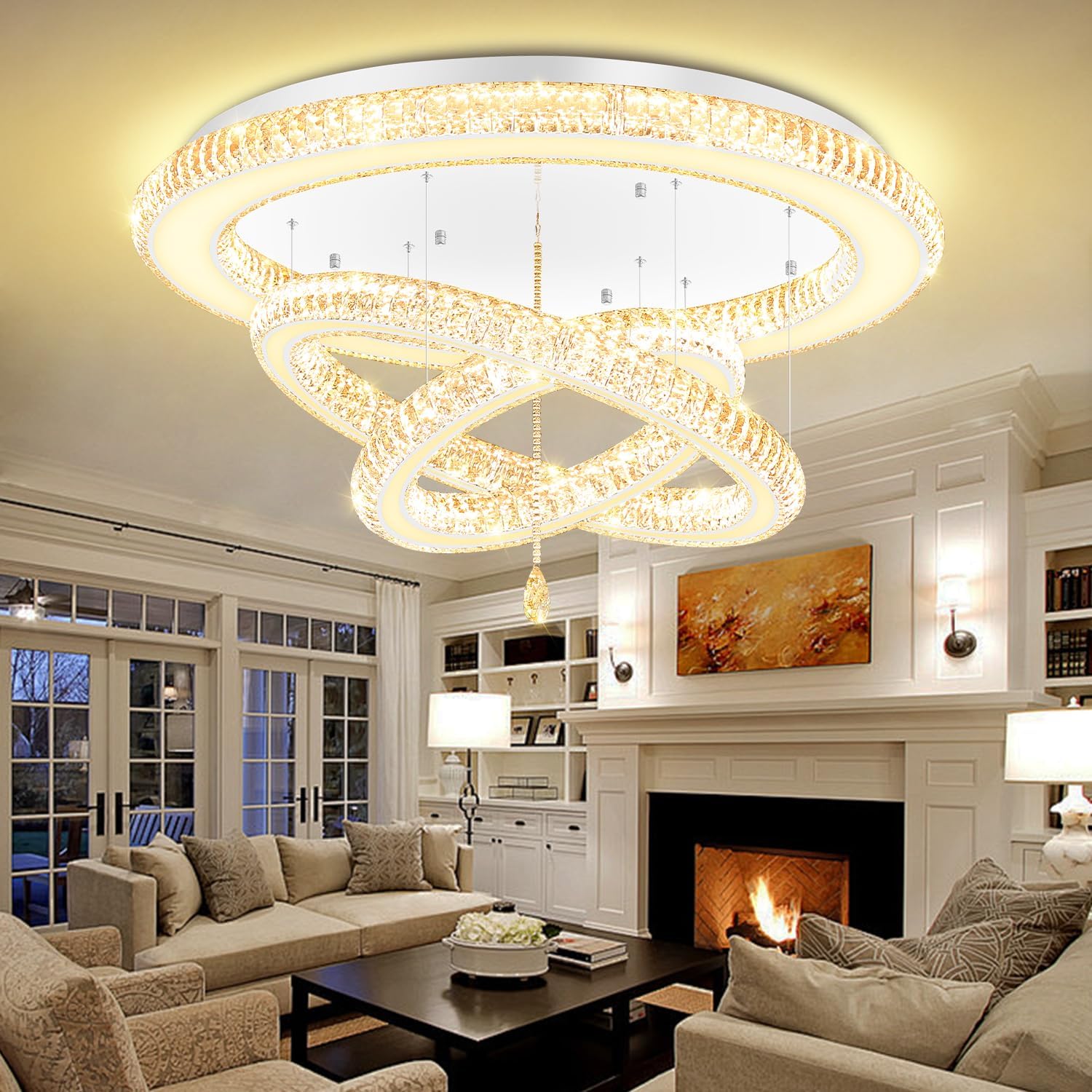 IDEQUY Modern Led Flush Mount Crystal Chandelier