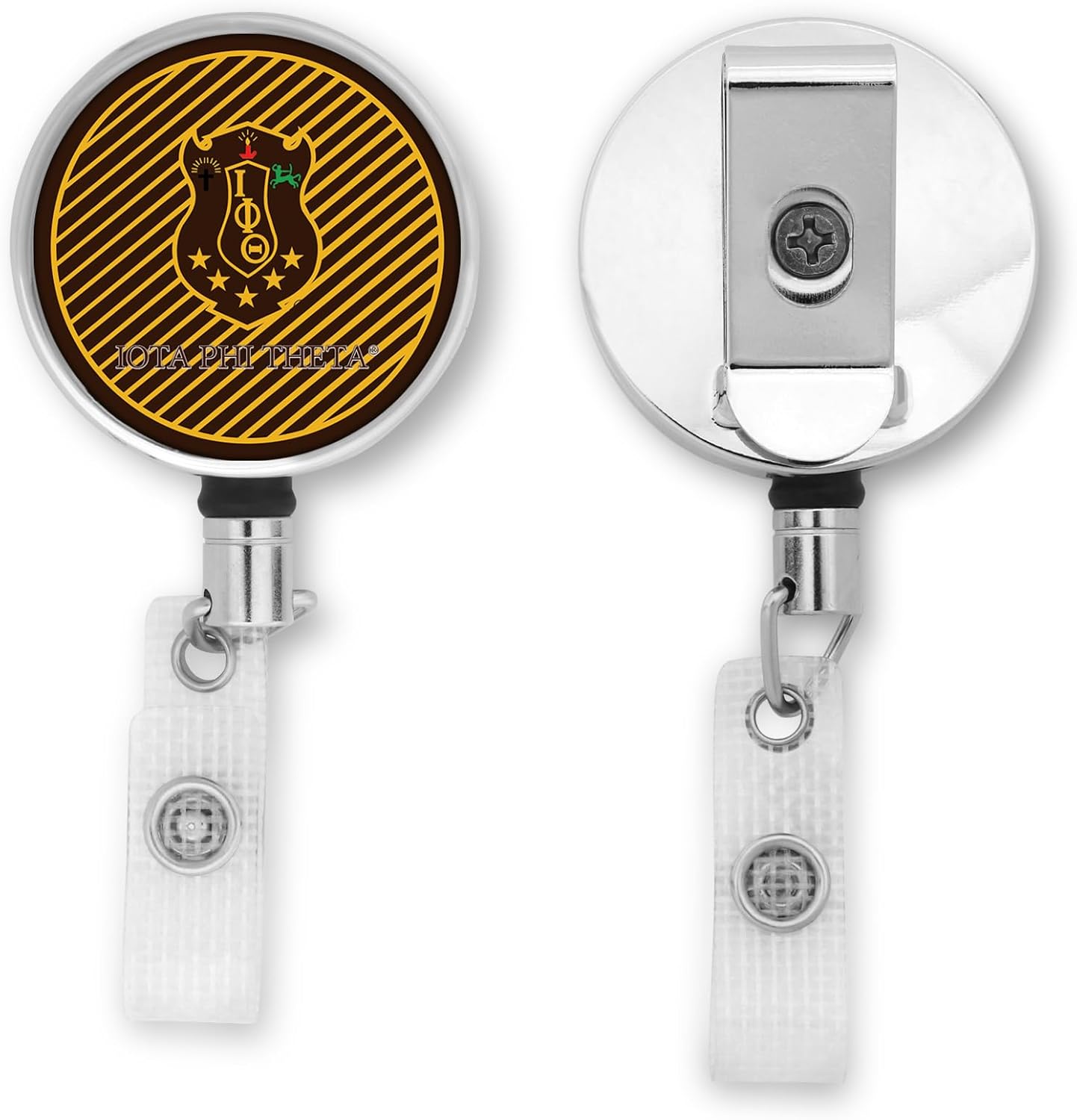 PREMIUM QUALITY MATERIAL: Iota Phi Theta Custom Badge Reel Holder is made from metal. SIZE: The custom Badge Holder diameter: 1-9/16". IMPECCABLE GRAPHICS: Iota Phi Theta Badge Holder features Iota Phi Theta name, logo, and motto. SOLID REEL CLIP: The clip is screw-fastened in the back side so no need to worry that it will fall off. Easily clip on to belts, pockets, purse straps, backpacks or anywhere you like. Perfect name card badge holder for any industry, men and women. PERFECT ACCESSORY: Keep your name badge or key card handy with a personalized Metal Badge Reel. Easy to scan in and out of the office. Let everyone know how much pride you have for your Iota Phi Theta.