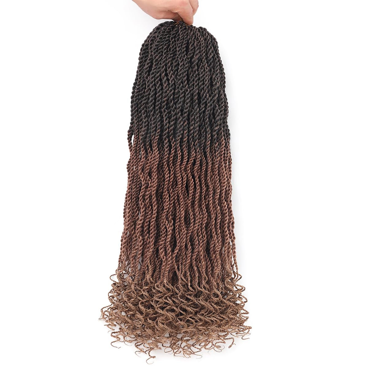 Material -- Our senegalese twist crochet hair made of pre-looped and flame-retardant hot water setting low temperature synthetic fiber,Light Weight,Very Soft,Not Rough,No Smell,No Tangle,Last Long Time,Natural looking!