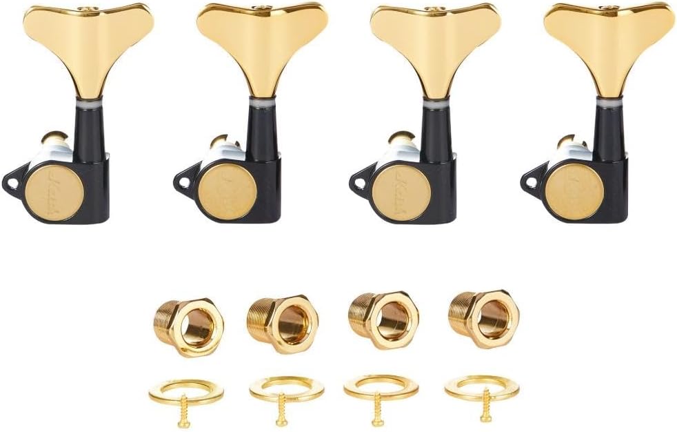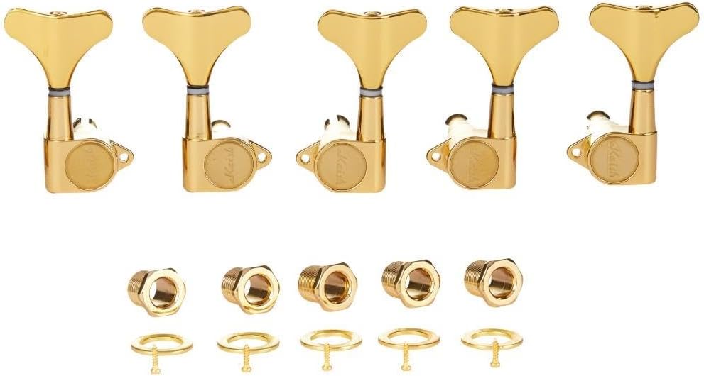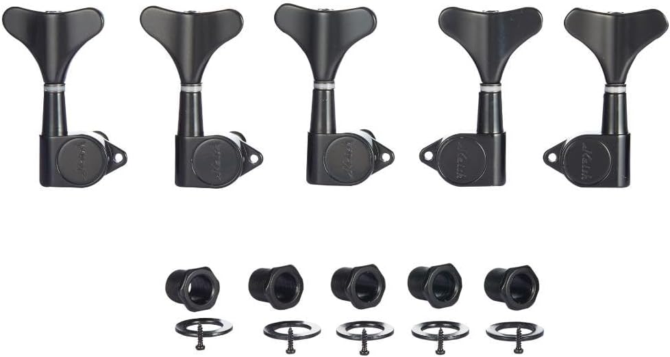 Left Handed 5 String 18:1 Sealed Bass Tuners Bass Guitar Tuning Keys Pegs Bass Tuning Machines Compatible with Ibanez/Yamaha Style Acoustic/Electric Bass Black with Gold Lefty 3L/2R