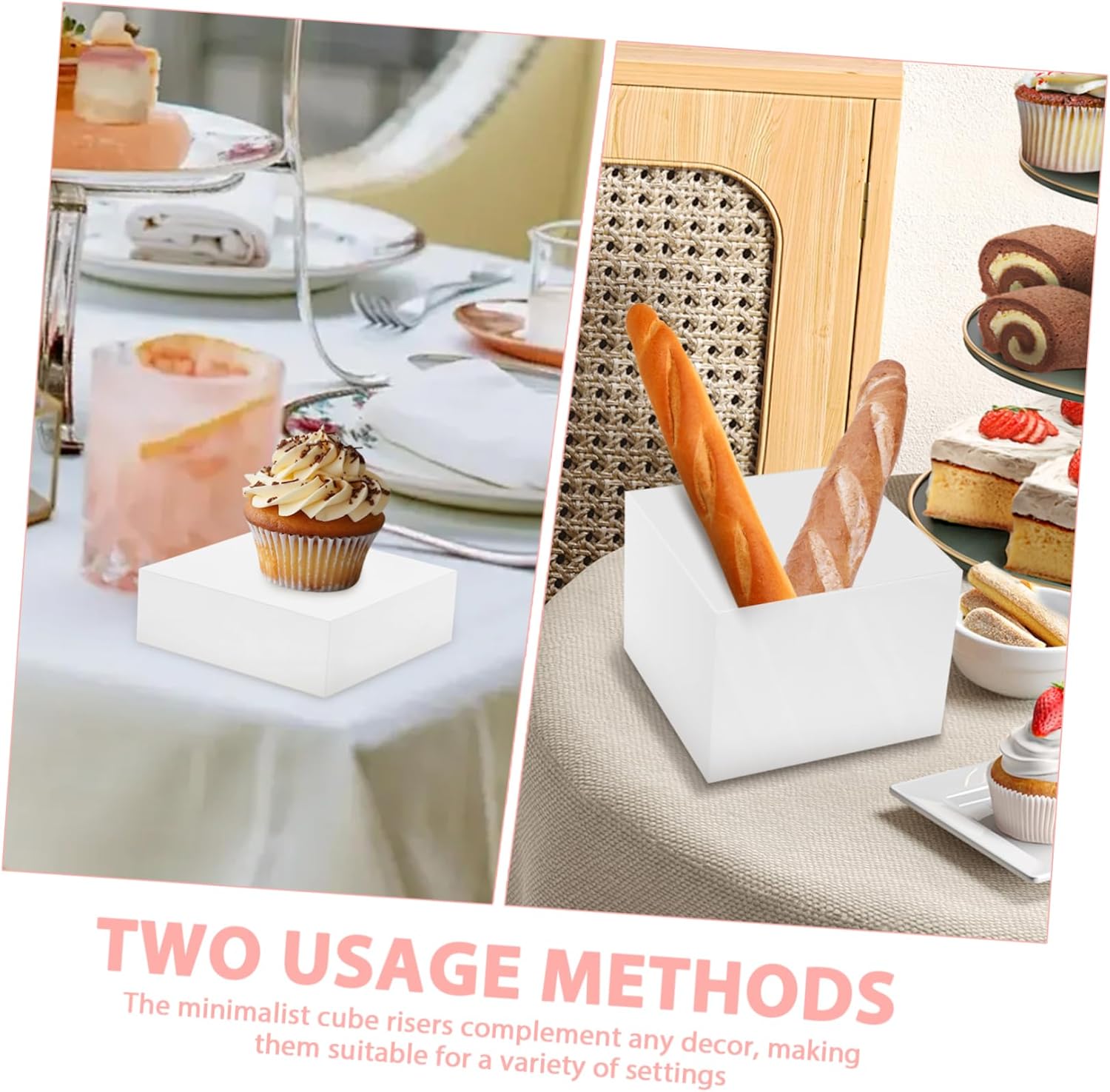 Package List 1 x display riser small 1 x display riser medium 1 x display riser large Features - Versatile usage: Designed for multiple uses, these display risers can be used as food risers for buffets, display stands for figures, or elegant holders for perfume bottles cupcake risers -Material:Acrylic catering supplies for display - Ease of use: Their simple design makes them easy to assemble and use, requiring no additional tools or complex setup, allowing you to freely adjust the arrangement buffet riser - Enhanced stability: Built with stability in mind, these display stands remain secure whatever you place on them, reducing the risk of tipping or damage food display holder -Color:White dessert risers - Cubic design: The clean, cubic shape of these food risers provides a modern and uncluttered look that complements any setting, whether it's a buffet table or a display shelf perfume stand -Size: 15.50X15.50X5.50cm/6.09X6.09X2.16in 20.50X20.50X15.50cm/8.06X8.06X6.09in 18.00X18.00X10.50cm/7.07X7.07X4.13in buffet food stands - Aesthetic appeal: The minimalist style of these display risers enhance the appearance of the items displayed on them without detracting from the items themselves food display risersGoods Informationfood display risers Elevate your food presentation with our cube risers.cube riser With their clean, cubic shape, these risers can also double as elegant displays for figures, perfumes and many other items.dessert risers These versatile risers are designed to add height and dimension to your buffet table, making it easier for guests to access and admire your culinary creations