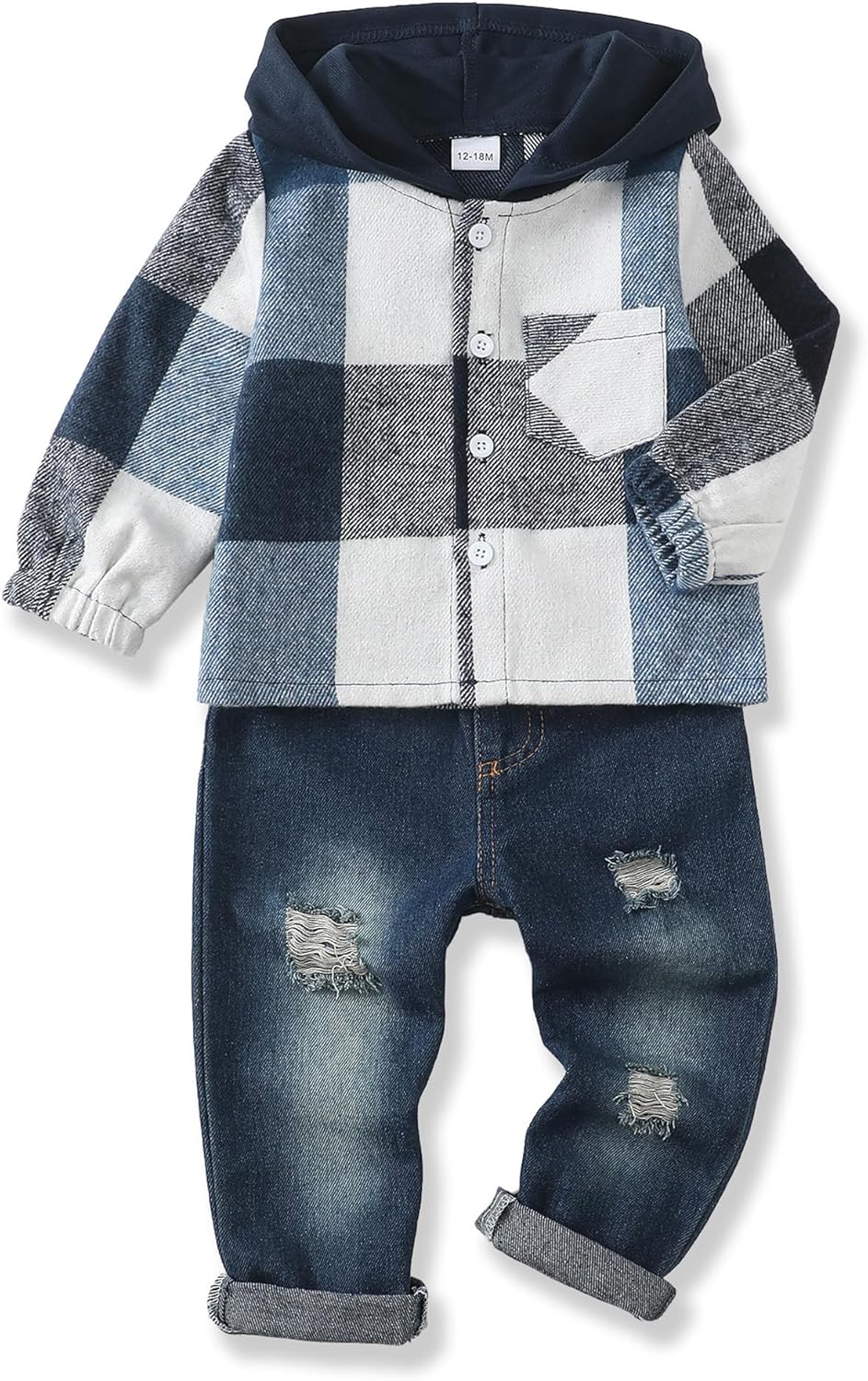 Style: 2PCS cute infant boy clothes fall winter Material: Cotton blend, comfy fabric Age: 12 months to 4t, little boy outfits fall Season: Suitable for fall and winter casual wearing