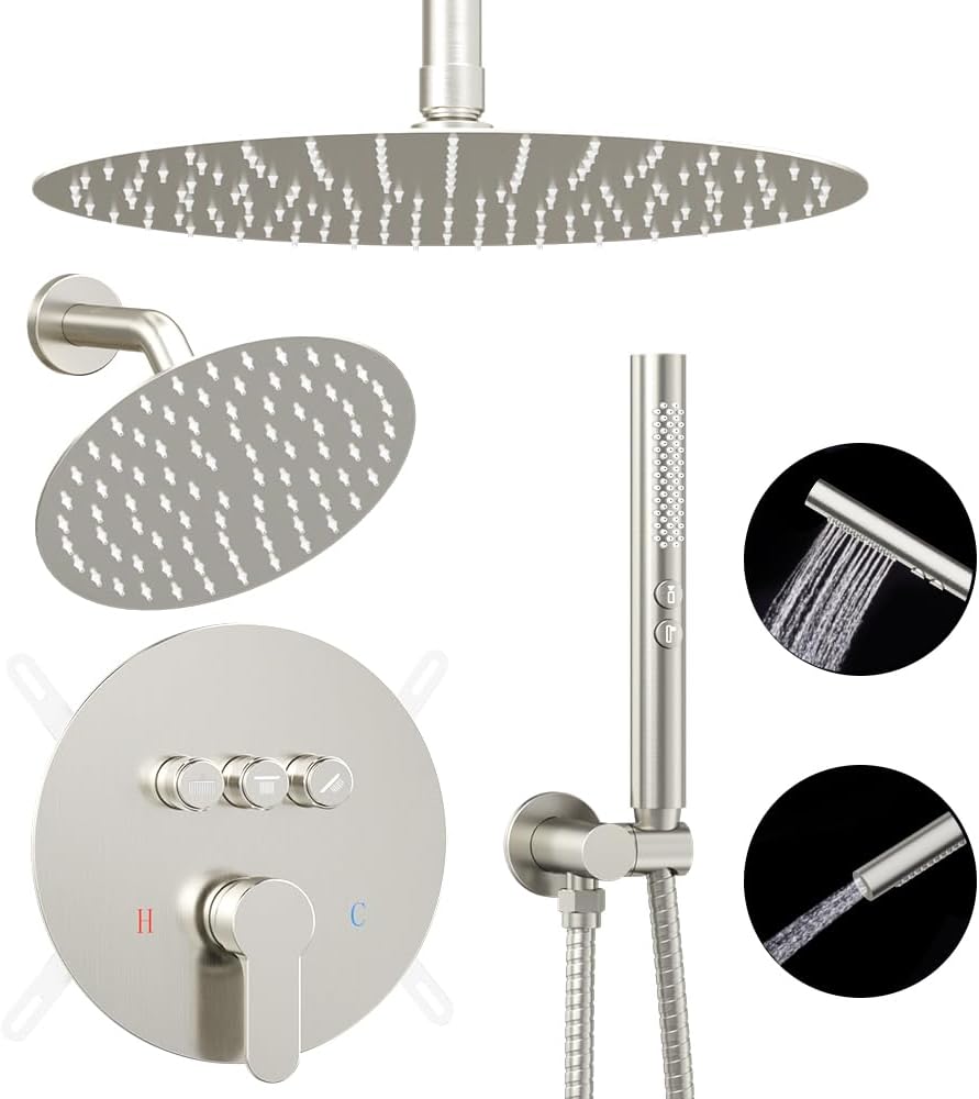 | Included Components | 1*10 inch Ceiling Mount Rain Shower, 1*2 in 1 Handheld Spray, 1*6 inch Wall Mount Rain Shower, 1*Brass valve body |