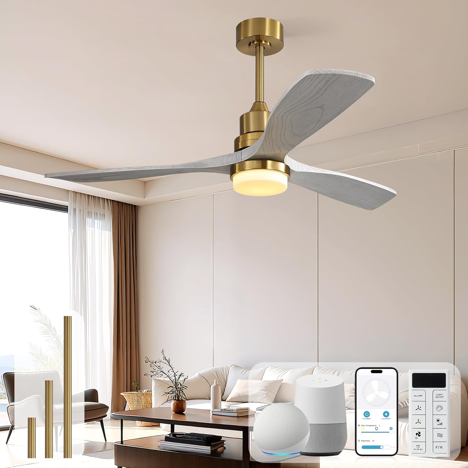 | Included Components | 1 × DC Motor, 1 × Remote Control, 3 × Downrods, 3 × Wood Blades |