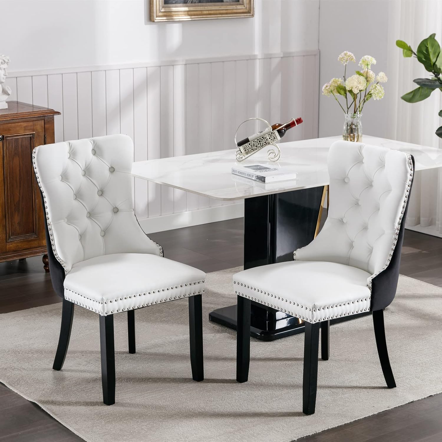 | Item Type Name | Brisca Solid Wood Velvet Upholstered Dining Chair with Golden Stainless Steel Plating Legs,Contemporary Design W/ Nailhead Trim,Set of 2,for Living Room,Apartment,Black and Gold |