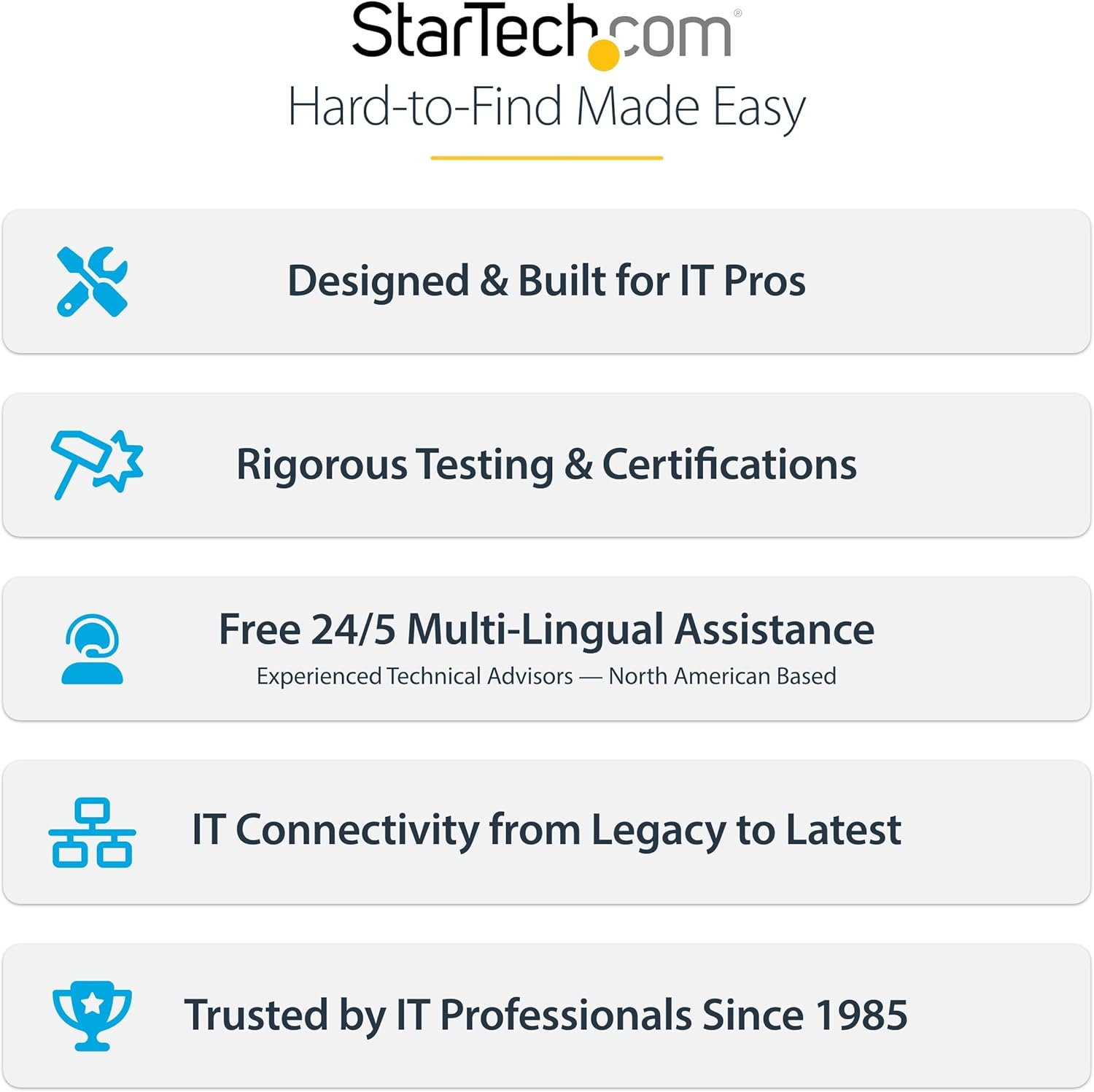 This USB-C multiport adapter with DP 1.4 supports 4K 60Hz HDMI (HDR) and turns your MacBook Pro, Dell XPS, or other USB-C laptops or tablet into a workstation, anywhere you go. The USB Type-C multiport adapter provides 4K HDMI video output, two USB 3.1 Gen 2 Type-A (10Gbps) ports, an SD card reader and a Gigabit Ethernet port all through one connection to your laptop's USB-C or Thunderbolt 3/4 port. Plus, it offers advanced charging through USB Power Delivery 3.0 and an extra-long attached 10-inch (25 cm) host cable for an extended reach to offer more set up flexibility. USB 3.1 Gen 2 (10Gbps) is also known as USB 3.1 Gen 2x1 (10Gbps). Enhance Productivity The portable docking station connects your laptop to a 4K 60Hz HDMI monitor (4096 x 2160p) to create a powerful workstation. It can also connect to an ultrawide monitor. DP Alt Mode Required Maximum Resolution DP 1.2 Alternate Mode Up to 4K 30Hz DP 1.4 Alternate Mode Up to 4K 60Hz Connect Your Devices The USB-C to USB 3.1 Gen 2 hub gives you two USB-A (10Gbps) ports to connect your USB devices. Easy Portability For mobile use, the USB-C adapter can operate with bus-power alone, or with a USB-C power adapter for laptop and BC 1.2 peripheral charging. The docking station is lightweight and features a built-in wraparound USB-C host cable. Built-In SD Card Reader Access your multimedia content with ease. The multiport adapter provides direct access to your SD, SDHC and SDXC memory cards or microSD (uSD) cards. Charge Your Laptop and Peripherals With support for USB PD 3.0 (up to 100W), the USB Type-C multiport adapter lets you power and charge your laptop, and power your peripherals when connected to a USB-C power adapter. PD 3.0 features Fast Role Swap to prevent USB data disruption when you switch power sources (USB-C power adapter to bus power). Reliable Network Connectivity The Gigabit Ethernet port ensures reliable wired network access with support for PXE Boot and WoL. Enhance Productivity and Device Management with the StarTech.com Connectivity Tools Application Developed to improve performance and security, StarTech.com Connectivity Tools is the only software suite on the market that works with a wide range of IT connectivity accessories. The software suite includes: Advanced Windows Layout Utility : To setup and save custom windows layouts. Mac Address Pass-Through Utility : To improve network security. USB Event Monitoring Utility : To track and log connected USB devices Wi-Fi Auto Switch Utility : Enabling users to quickly access faster network speeds via wired LAN.