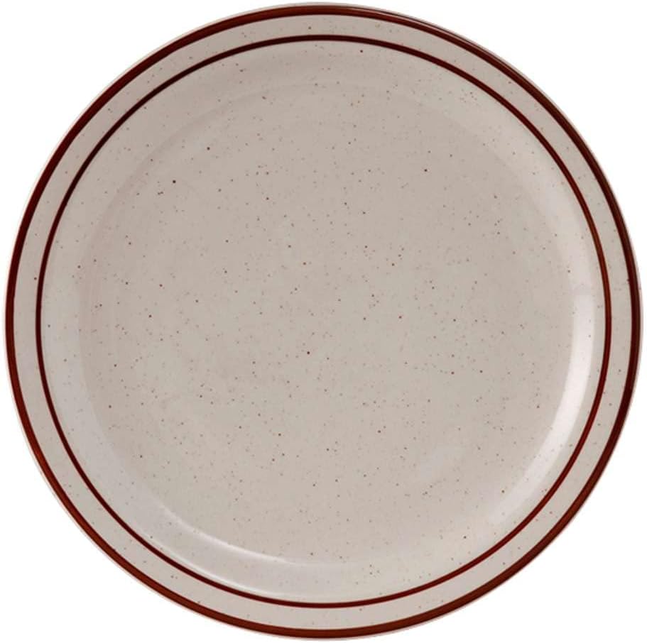 The Tuxton China TBS-006 Plate, with its 6-1/2" diameter and narrow rim design, is crafted for efficiency and versatility in high-demand settings. Ideal for serving appetizers, desserts, and small portions, this plate adds style and function to any table. Its fully vitrified ceramic construction ensures exceptional durability, making it a smart choice for frequent use in restaurants, cafes, or catering services. The classic brown/eggshell color complements various cuisines, enhancing visual appeal and providing a consistent, inviting look across the table. Microwave, oven, and dishwasher safe, this plate seamlessly transitions from heating to serving to cleanup, allowing staff to focus more on service and presentation. Purchasing a pack of 36 ensures your establishment has a ready supply for peak hours, supporting quick and uniform service. By maintaining consistent plating options with this durable plate, you can elevate customer satisfaction while controlling costs, as fewer replacements are needed. The TBS-006 plate is a valuable addition for any business seeking to enhance both efficiency and dining experience.