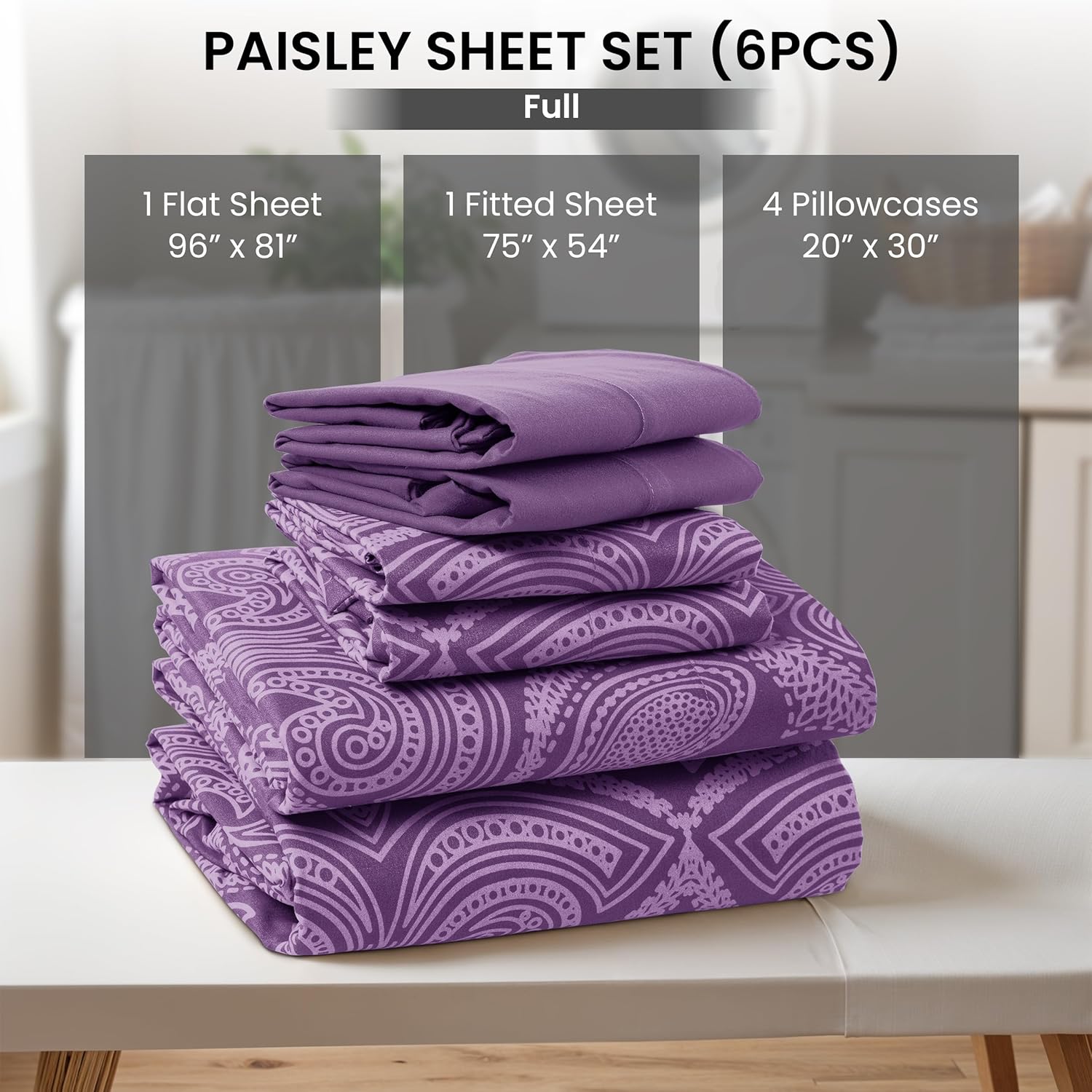 | Included Components | 4 Pillowcases, 1 Fitted Sheet, 1 Flat Sheet |