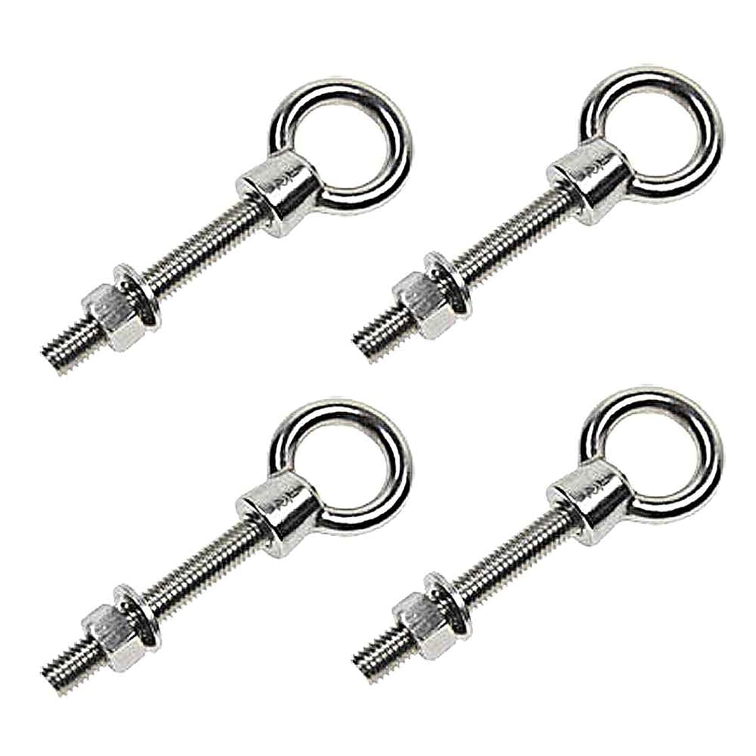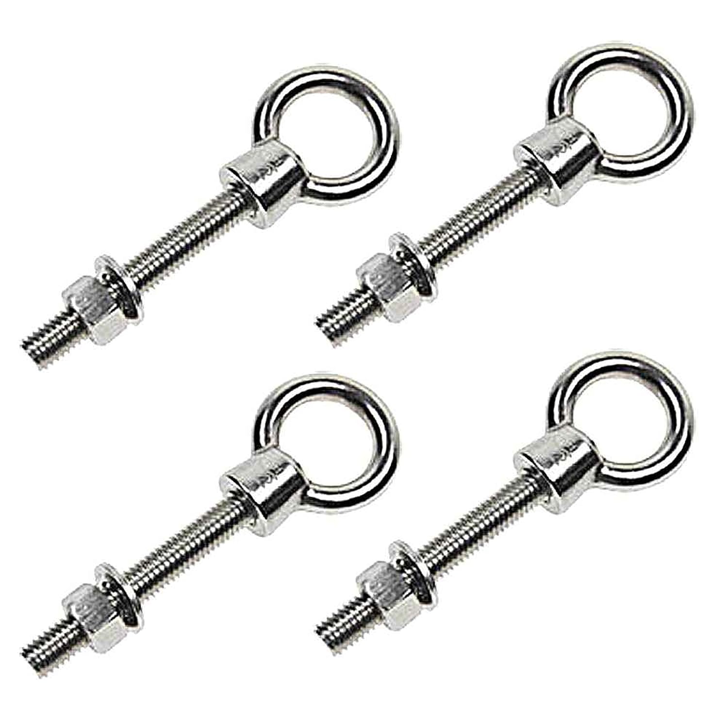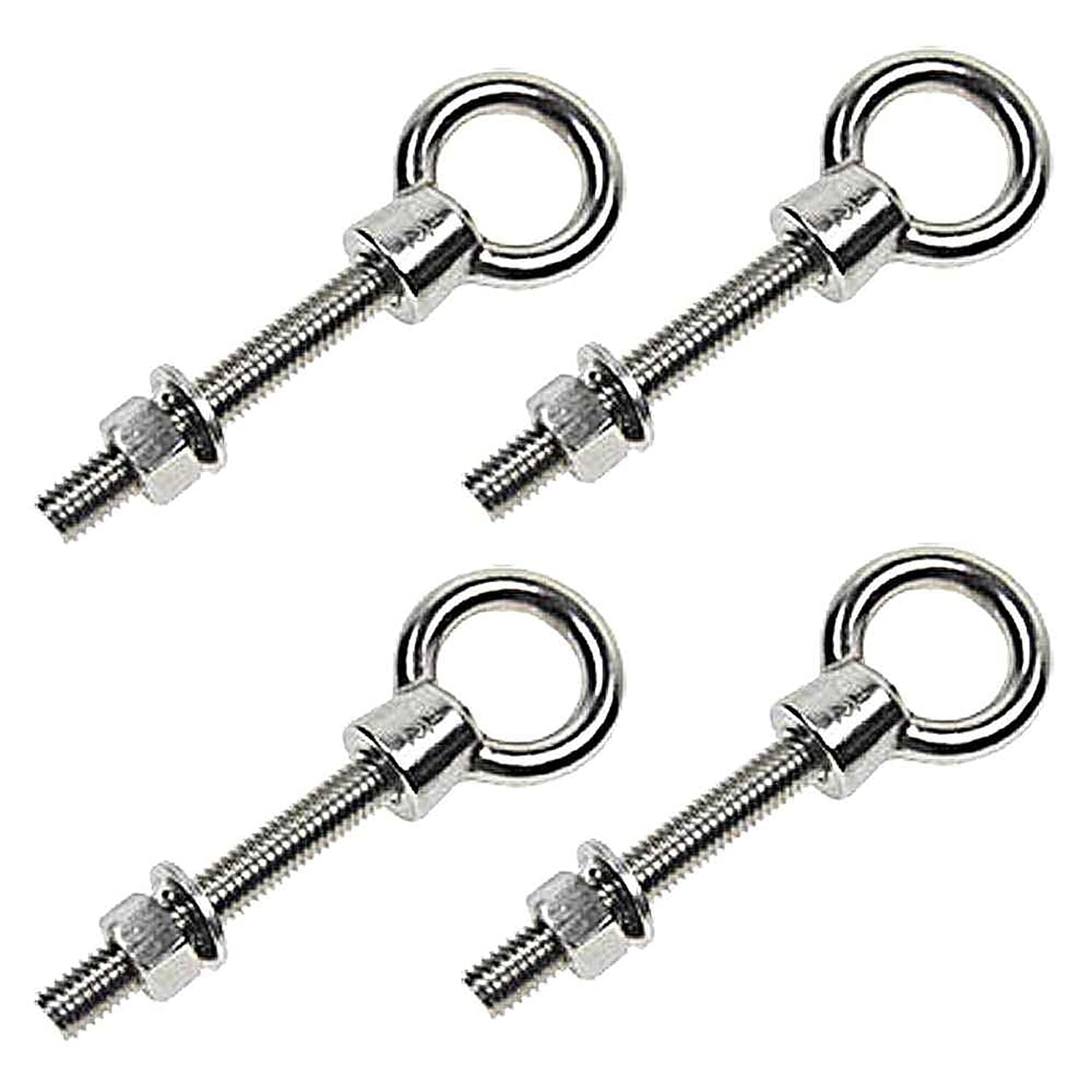 Made of type 316 stainless steel, these shoulder eye bolts are commonly used on boats or docks as a tie down loop, since they have great corrosion and oxidation resistance. Their low maintenance and luster also make them popular for architectural applications. Shoulder eyebolts can be used for either straight line or angular lifts, since the shoulder helps support the load as it pulls at an angle. The eyes of the steel eye bolt can accomodate wire rope, shackles and other rigging supplies. Includes eye bolt, nut and washer.Please Note: Loading at an angle will significantly reduce a bolt's rated capacity; a 45 degree angle reduces it to just 1/4 of the stated rating. Never load at an angle greater than 45 degrees from the bolt center line.