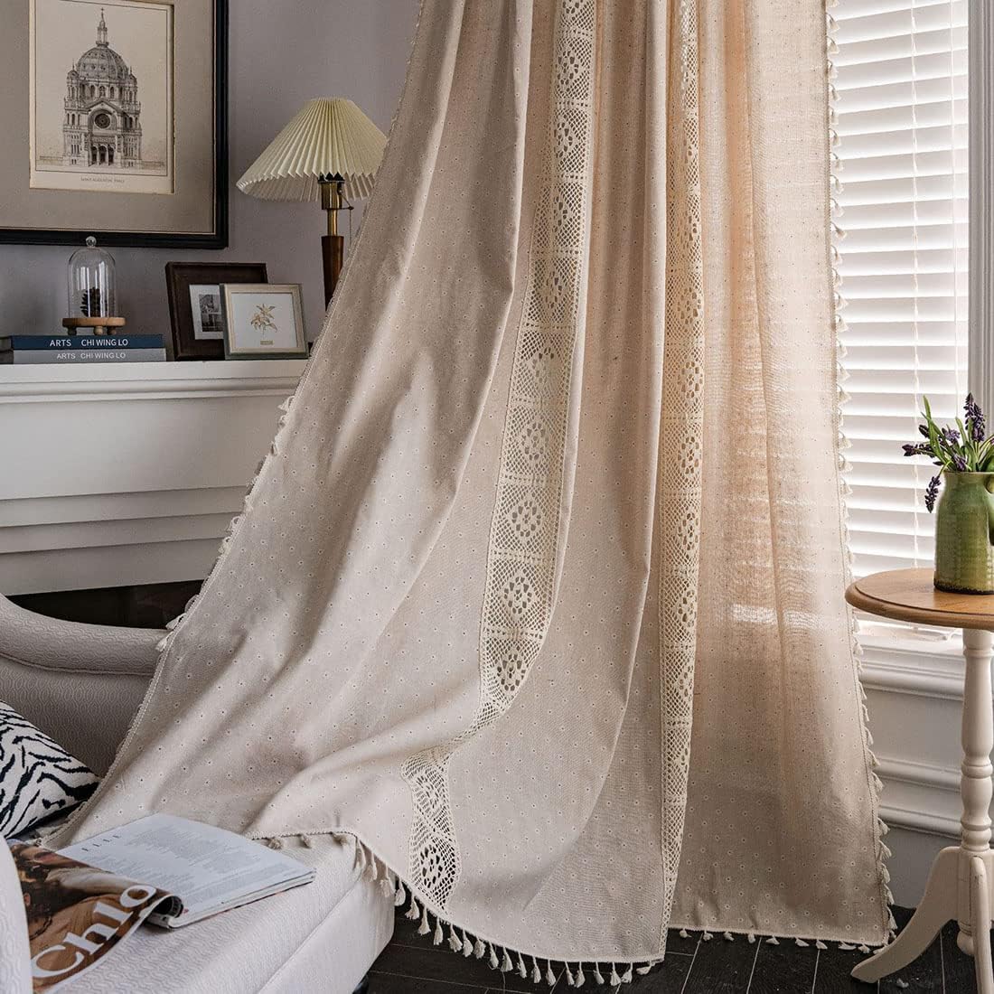 Design: Crochet Knitting, Farmhouse Retro Style, Hollow Out design let the right amount of light flow into your room. Allows light to flow through the room. Vintage farmhouse style window curtain to make your room looks romantic cozy and freedom.