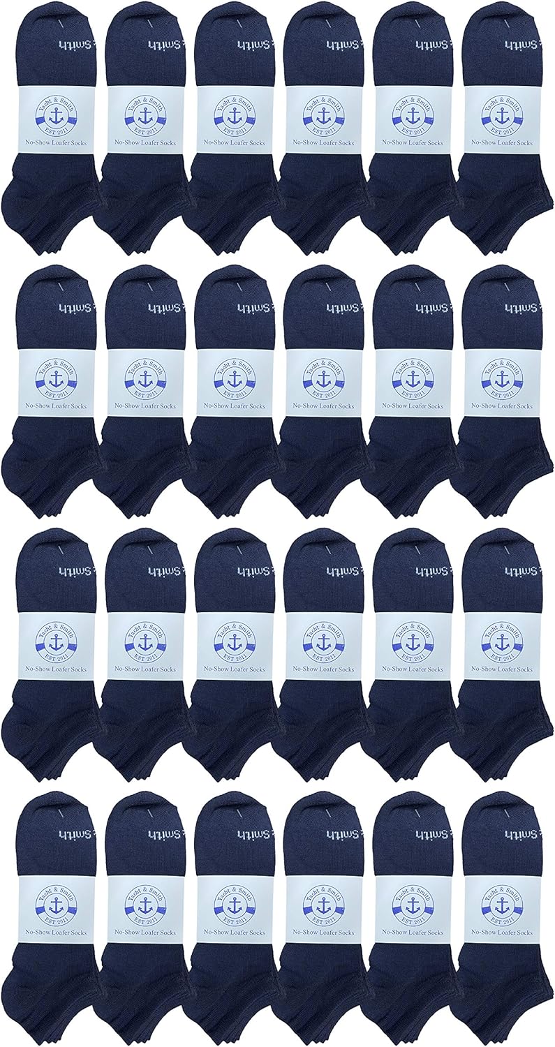 Each pack includes 24 pairs Yacht & Smith of low cut ankle socks for men. Choose from a variety of colors including white, black, gray, Navy or assorted ! These comfort blend polyester socks are perfect for all purposes, whether as a gift, team sports, donations, or for personal wear. Features a comfort band that ensures that your socks stay up even in high motion activity. The softer and breathable texture provides comfort around the clock. These low cut socks provide moisture wicking capabilities that draw sweat and moisture away from the skin, leaving a fresher, drier, and cooler sensation. These socks are ideal for the summer and spring due to its lightweight and breathable texture, but can be worn all year round. Made with a comfortable polyester blend. This sock stretches and conforms to the feet for a relaxed fit. This wholesale bulk pack is perfect for art projects, donations, charity events, gifts, and more. SOCK SIZE TO SHOE SIZE: (Mens 10-13 fits 8-13) (Womens 9-11 fits 4-10) (Kids 6-8 fits 7-10)
