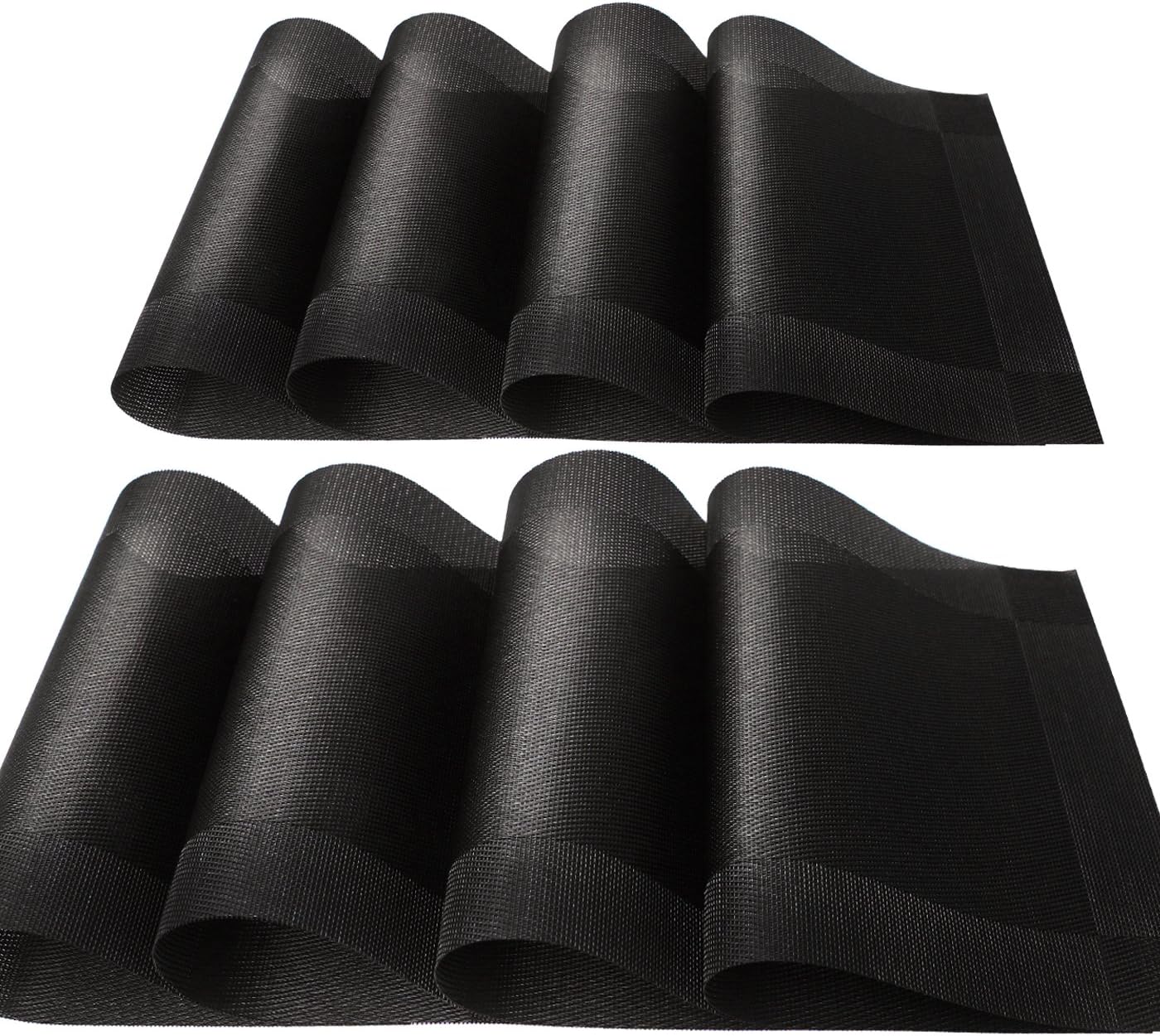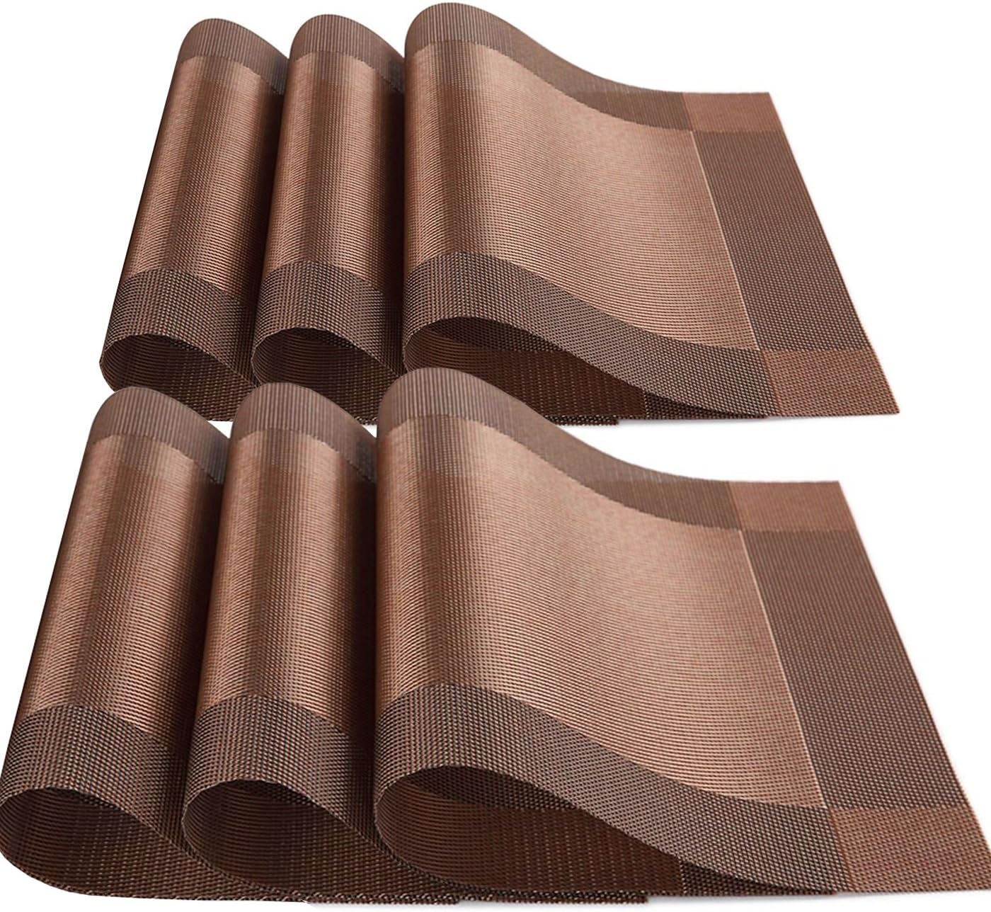 Everyday kitchen PVC placemats.Used as placemats,coasters,potholders and heat pads on dining tables,tea tables. Everyday kitchen PVC placemats Product Features: 1.It looks very pretty and elegant,a perfect addition to your dinner table! 2.Made of high quality PVC, durable and environmental. 3.Easy to replace and take care. 4.The double-sided weave pattern also makes it easy to switch up your table look by turning over your placemats. 5.Dimension: 17 3/4" L x 12" W 6.Usage range:Home,hotel and business offices,conference tables,kitchen tables. Dining room heat insulation and stain-resistant placemats for table. Function: 1.The placemats protect and bring style to your dinner table. 2.The highest heat-resisting temperature can amount to 250F. 3.Very durable, wipe clean,pefect ideal for everyday use. 4.Used as placemats,coasters,potholders and heat pads on dining tables,tea tables. 5.It will help improve your dining experience and impress your guests. Tips *Colors shown in pictures may slightly differ from actual product due to lighting and color settings. *Packaged flat rather than rolled.