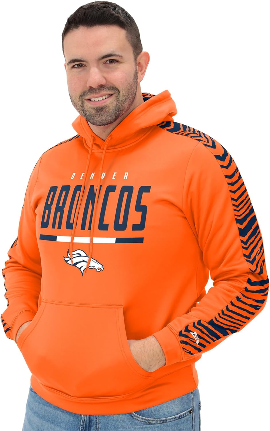 • Official NFL Gear: Licensed men’s fleece hoodie featuring authentic team graphics, accented with bold Zubaz zebra tonal styling for a standout, game-day ready look.